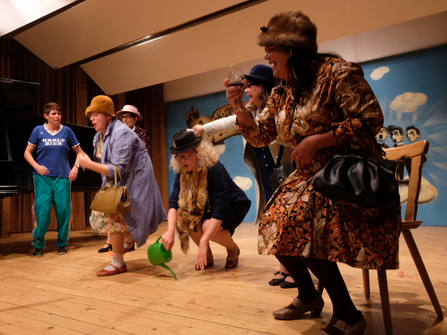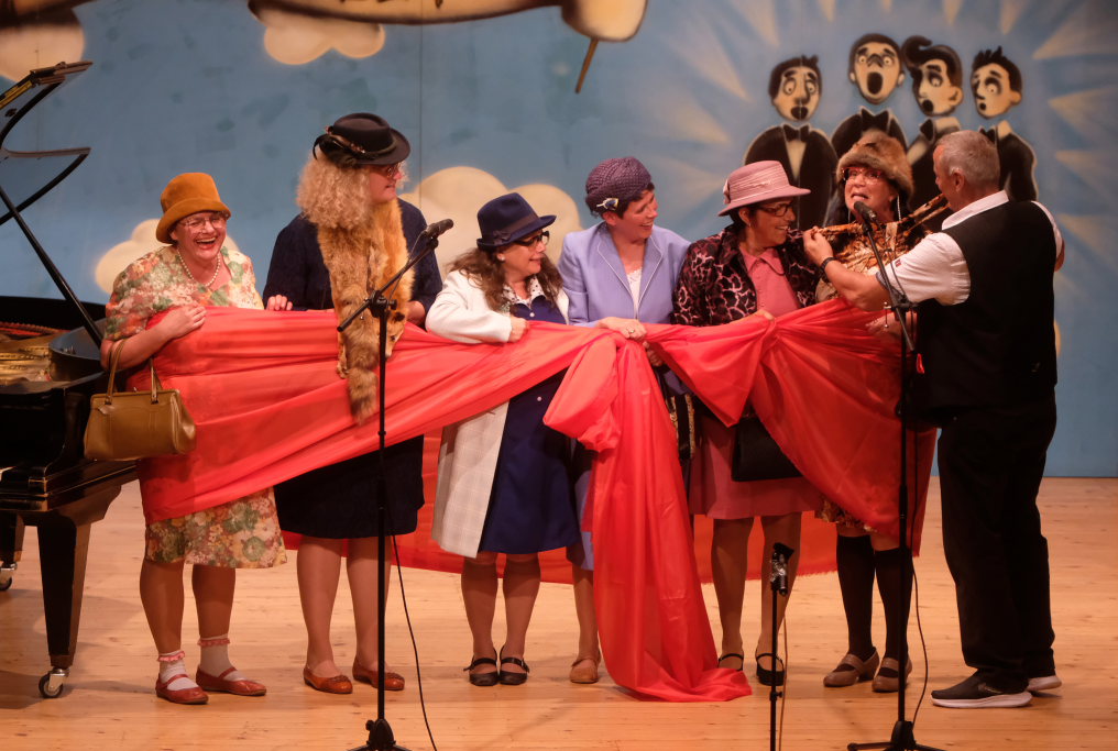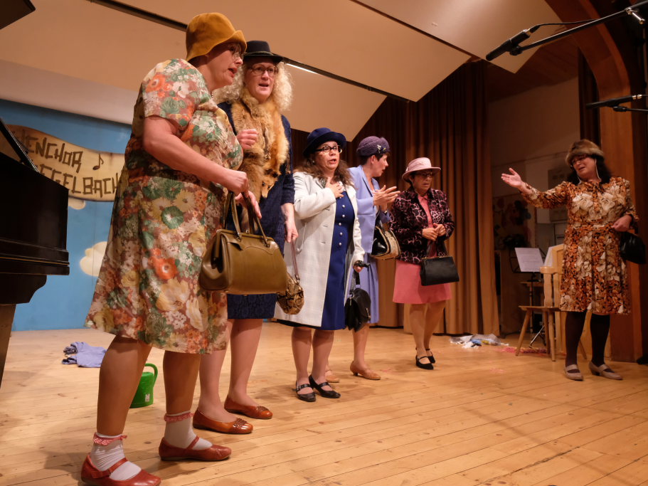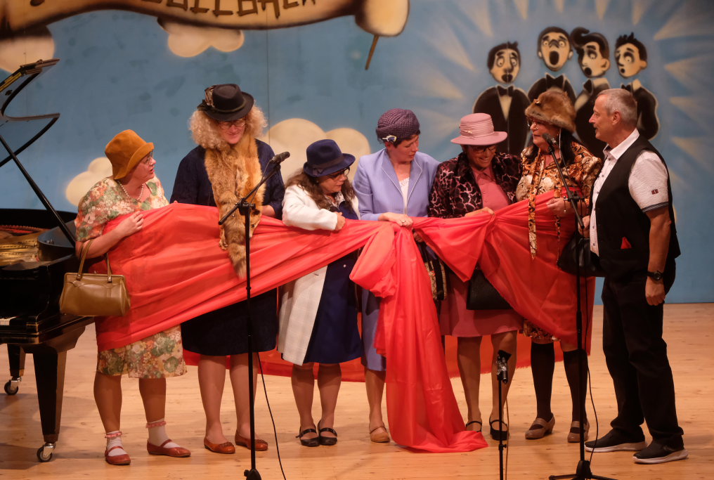 Beim zweiten Teil durfte sich Günter Musch freuen. „Jetzt fängt dr Spaß für di a, jetzt derfsch mit lauter Fraua singa.“ kündigte Tine Wespel den Frauen des Kirchenchores an, der mit „Que Sera“ dem Lied, das durch Doris Day weltberühmt wurde, den zweiten Programmteil eröffnete. Anschließend besangen die Damen die Höhen und Tiefen der schönen Tilla. Natürlich gabs daran anschließend noch eine Zugabe.