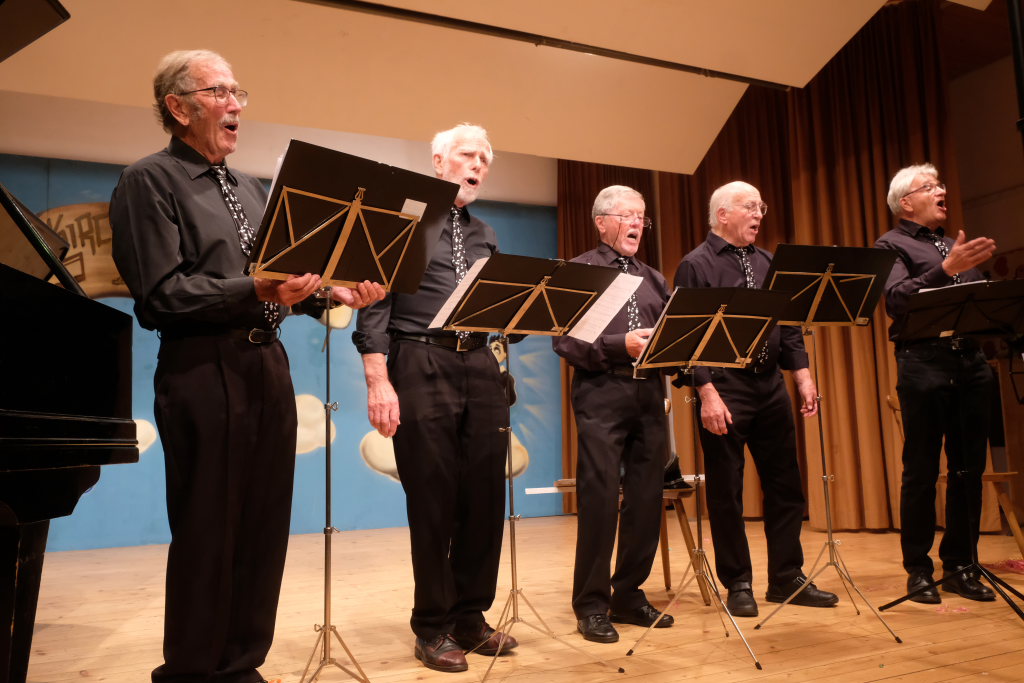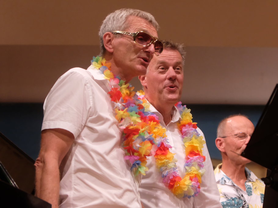 Die ‘Singing men Group’ präsentierten im Hawaiihemd das Beachboys-Medley „Surf in the Usa“ und „Like ice in the sunshine“, bekannt von der Langnese-Kino-Werbung. Nicht fehlen durfte bei einer singenden Männergruppe der Grönemeyer-Kult-Hit „Männer“. Als Zugabe hatten sie mit „Weit, weit, weg“ einen der größten Hits von Hubert von Goisern mitgebracht.
