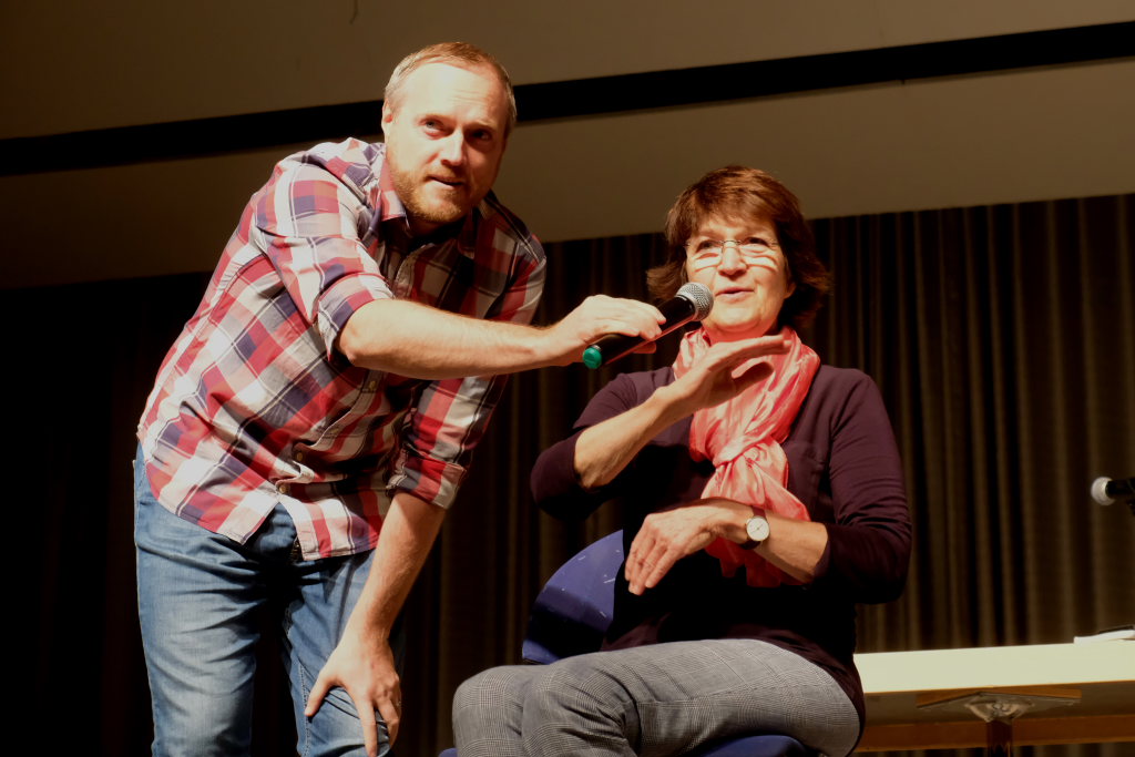 Bei der Abfrage gleich zu Beginn, ob denn auch Nicht-Schwaben im Saal seien, meldete sich mit Michaela eine sehr mutige Badenerin, die derzeit im Mütterkurheim zur Kur weilt. Sie wird diesen Abend wahrscheinlich nie mehr vergessen, denn Wolfgang Heyer ließ die rund 200 Schwaben im Saal bis hoch zur Orkanstärke für die badische Landsfrau applaudieren.