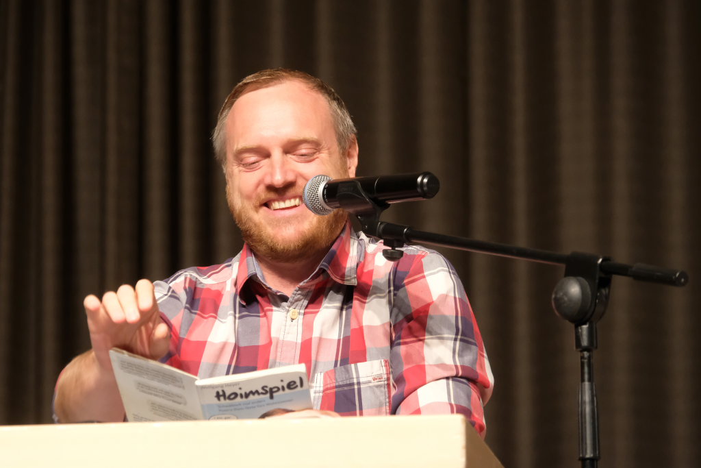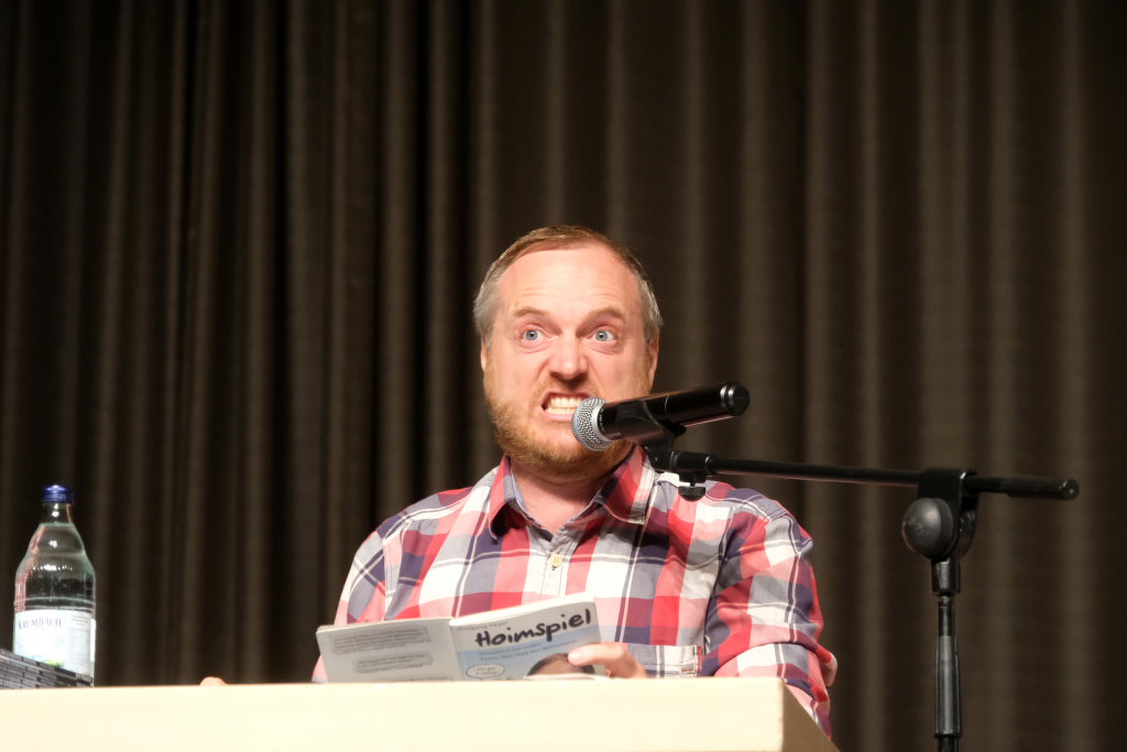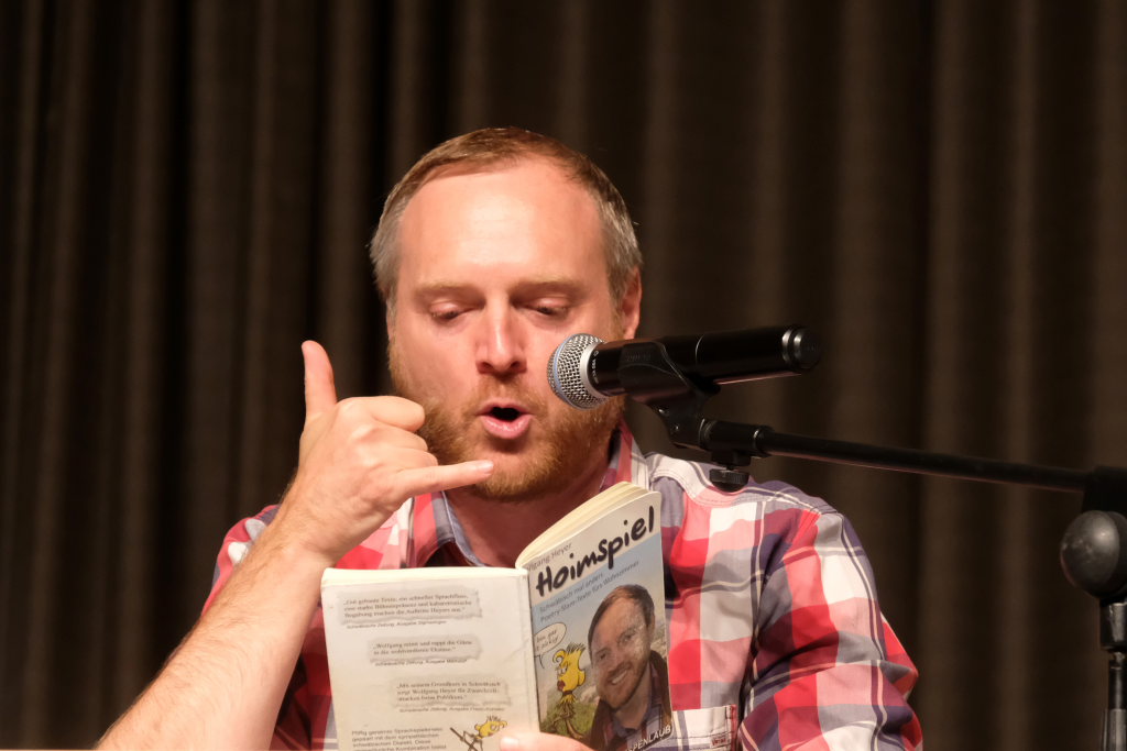 Natürlich ging beim Geschlechterkampf ums erste Wort des Kindes „Mama“ als Sieger hervor, weil besagte Dame in ihrem Manipulationsstreben sogar den Dadaismus bis ins Kinderzimmer trug. Dass bei dem Wettbewerb, bei dem sich das ser schwäbische „hälinga“ gemeinsam mit dem aktuell so erfolgreich kickende VfB auf die Hochdeutsch-Seite das Tableau verirrte – geschenkt. Dafür konnten auch noch echte Schwaben neue Wortkreationen lernen, die der schwäbische Poetry-Slammer, der im richtigen Leben den durchaus ehrbaren Beruf des Journalisten ausübt, dann meist mit entsprechenden Grimassen begleitete. Ein schönes neuschwäbisches Wort hat Heyer im Sportheim Aßmannshardt aufgeschnappt: „Neibiera“; es der absolut nichts mit Bodabiera zu tun; den jungen Leuten ging es um die Vernichtung großer Mengen des Gerstensaftes.