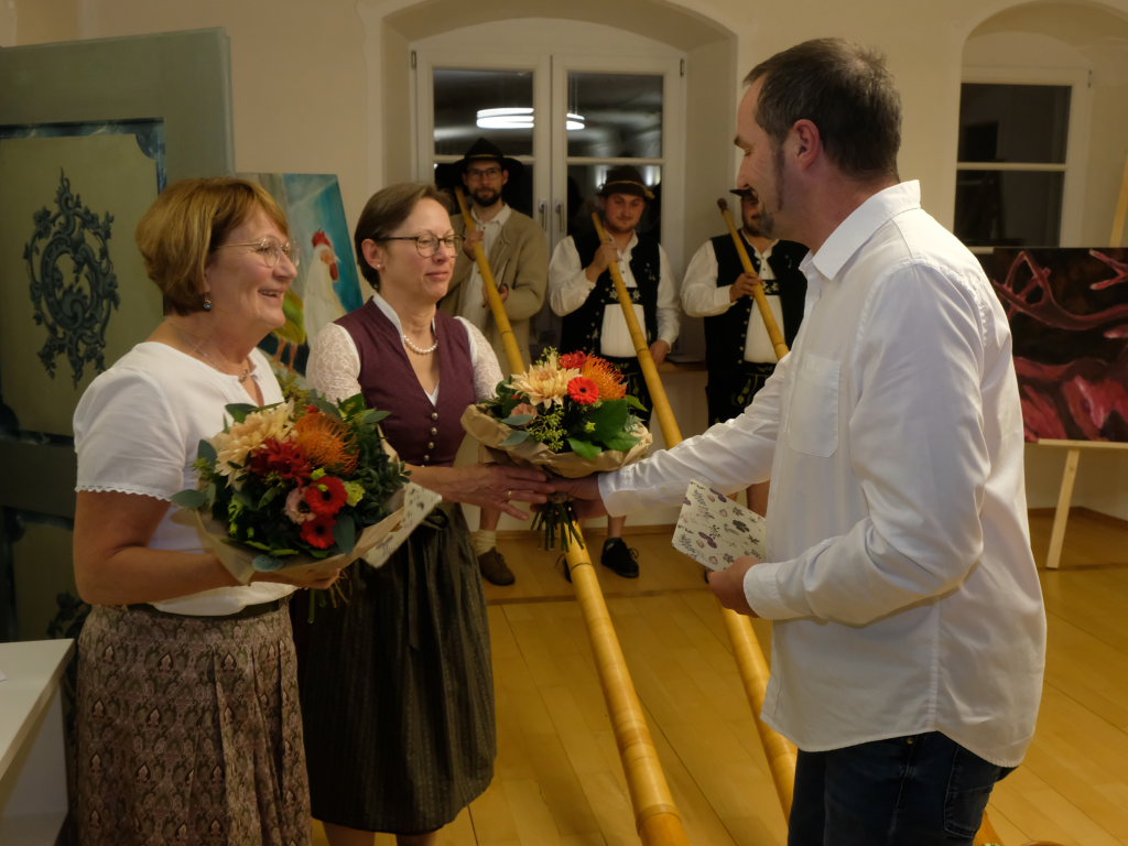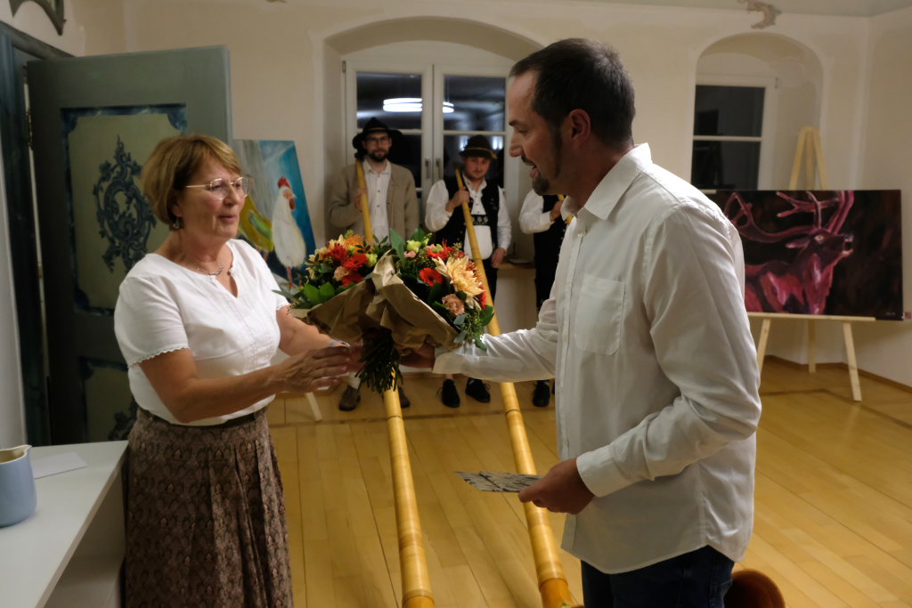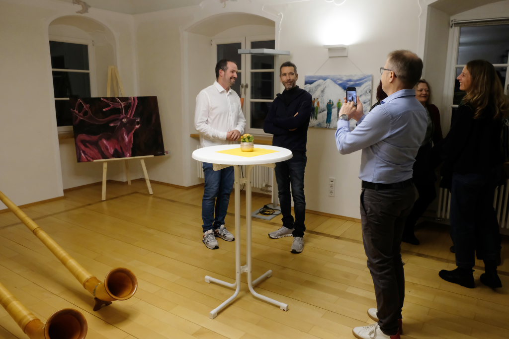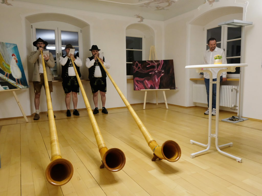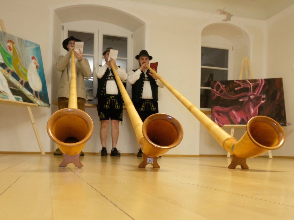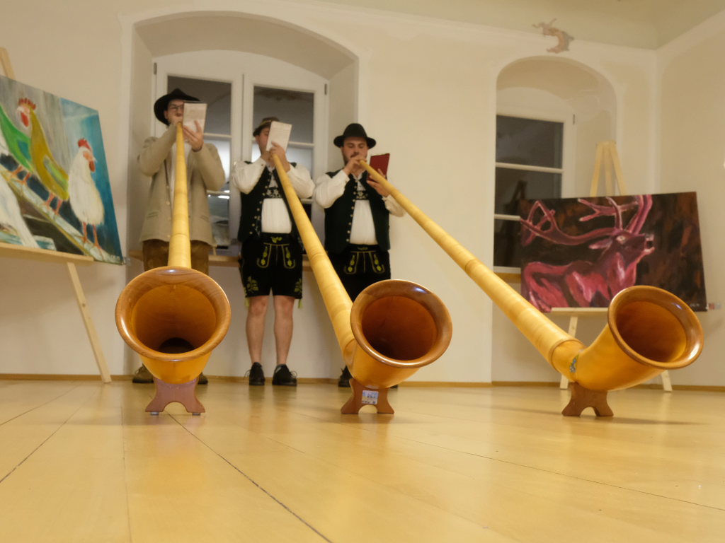 Premiere: Alphornbläser bei einer Vernissage in Maria Rosengarten