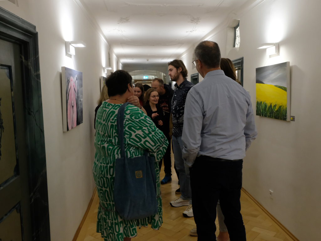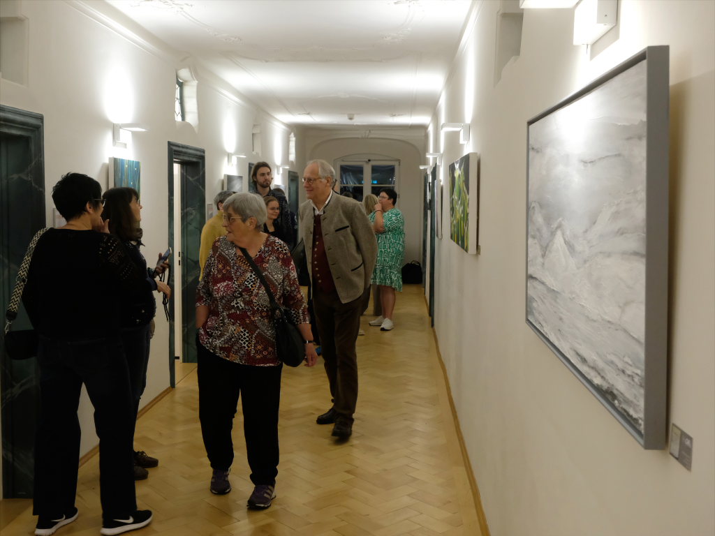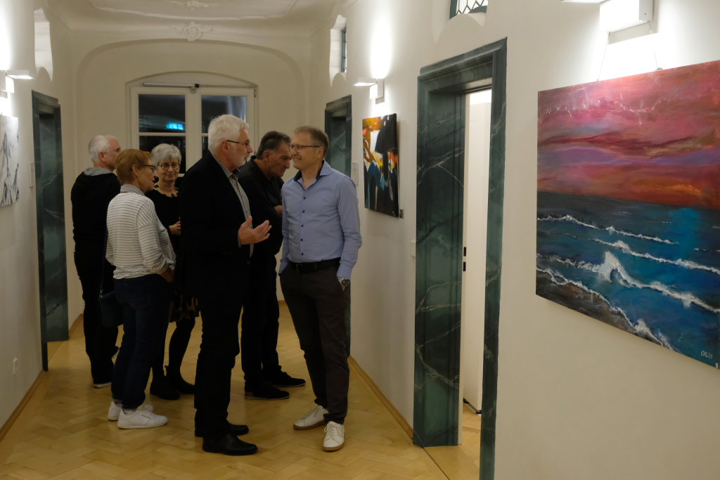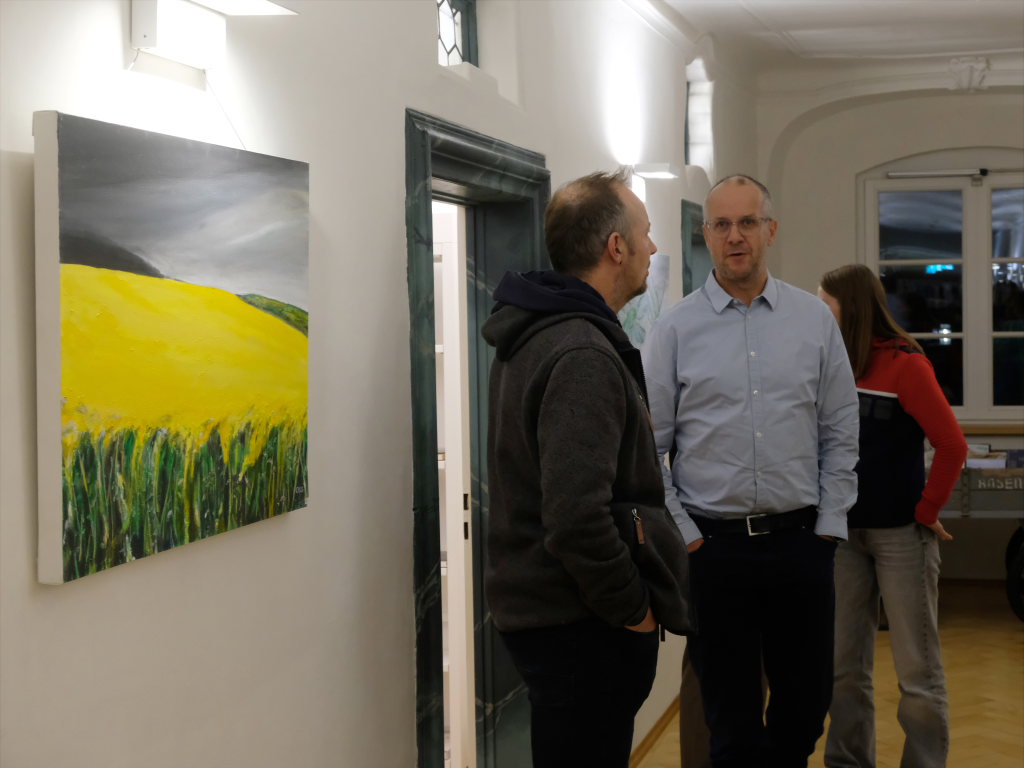 Klaus Schütt als Vertreter der Stadt und der Bürgermeisterin freute sich in seinem Grußwort, dass so viele Gäste der Einladung zu der Vernissage gefolgt waren. Er sah in der Tatsache, dass der Künstler von sich aus auf die Ausstellungsorganisatorinnen Doris Schäfer und Christl Linge zugegangen sei, ein Zeichen der Wertschätzung für die Galerie und ihre Organisatorinnen. Christoph Reich gab dieses Kompliment postwendend zurück: Es sei ihm eine Ehre, in den wunderbaren Räumen des ehemaligen Klosters ausstellen zu dürfen und stellte den beiden Galeristinnen ein hervorragendes Zeugnis aus.