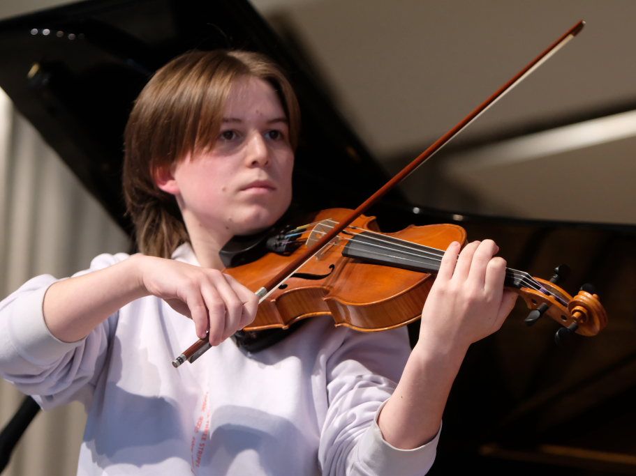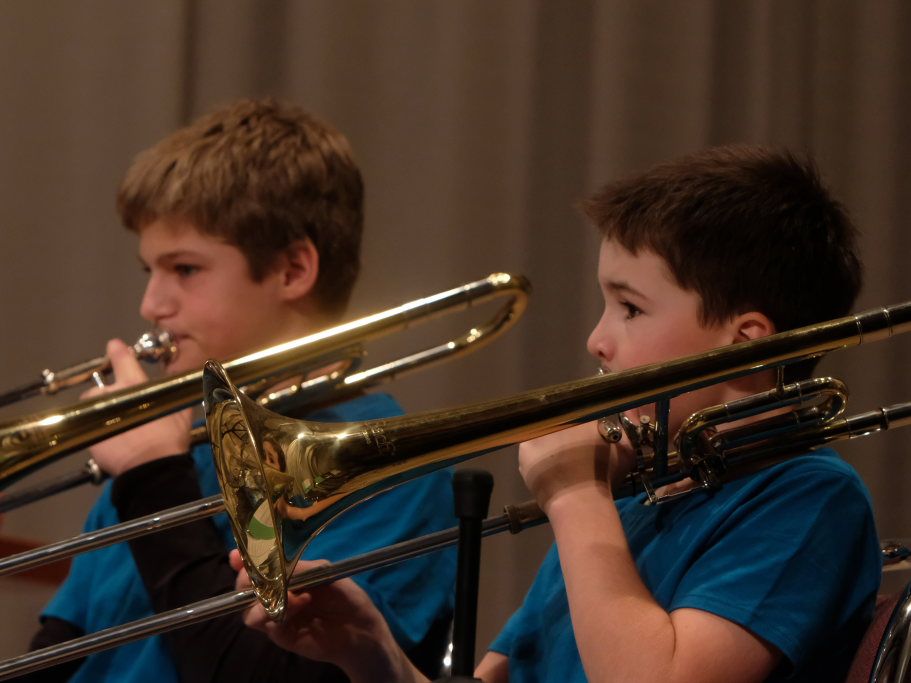 Nach den eher im klassischen Bereich angesiedelten Instrumenten folgten nun zwei Vertreter des größten Bereiches der Musikschule: Die Blasinstrumente. Mit Severin Vogt und Anna Zeller stellten sich zwei vielversprechende Talente aus der Horn-Klasse von Cecilia Brunetti vor. Severin Vogt bereitet sich intensiv auf den Wettbewerb „Jugend musiziert“ vor, während Anna Zeller demnächst beim Kreisverbandsjugendorchester vorspielen wird. Bei „Hunt the Horn“ bzw. „Morceau de Concert“ jeweils begleitet von Bernadette Vogt am Flügel, zeigten die Beiden großartige Leistungen an dem nicht gerade leicht zu beherrschenden Instrument.