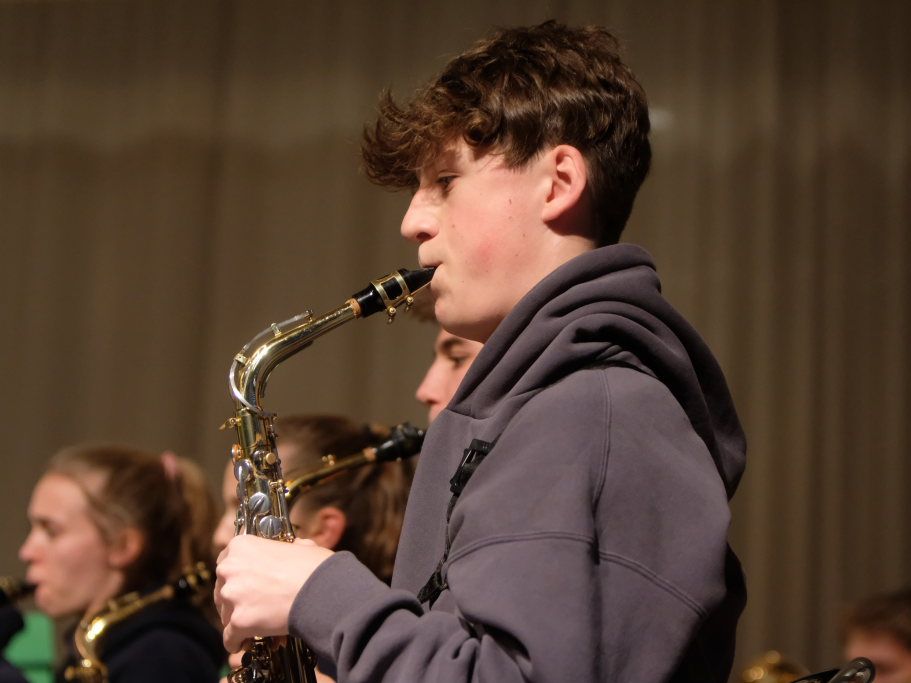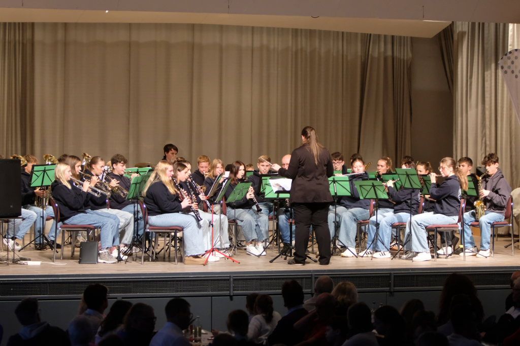 Im Werbeblock sagte die musikalische Leiterin der Jugendmusikschule daraufhin, dass bei der Jugendkapelle jeder Schüler, der ein Instrument spielt, mitmachen kann, unabhängig ob er nun an der Musikschule lernt oder nicht. Sie verwies außerdem auf die Auftritte beim Weihnachtsmarkt am kommenden Wochenende (30.11./01.12.2024)