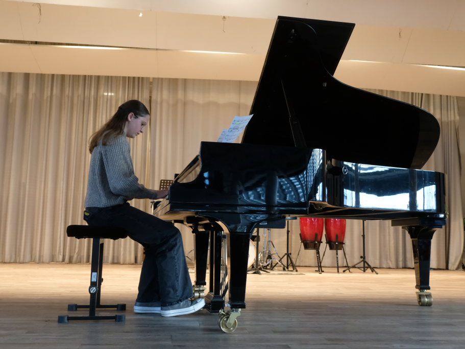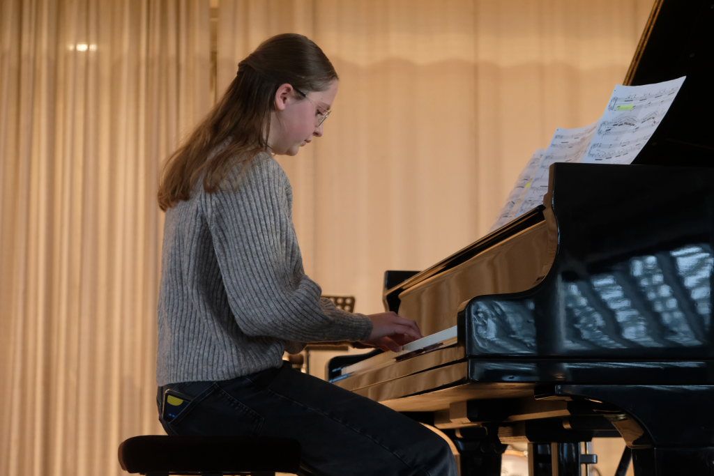 Aus der Klavierklasse von Larissa Bohr-Chernjak setzte sich danach Naila Schwärzel an den großen Flügel und zeigte bei einem der beliebtesten Klavierstücke „Für Elise“ eine für ihr Alter phänomenale Leistung. Ihr folgte mit Linda Weishaupt, ebenfalls Schülerin bei Bohr-Chernjak schon beinahe eine Virtuosin an den Klaviertasten.