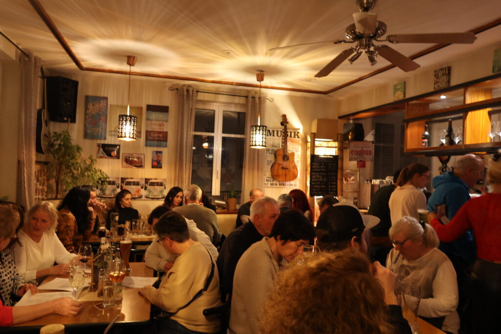 Stammgäste erzählten dem Berichterstatter in der Raucherpause vor der Türe, wie beliebt die Kneipe ist und wie die Singabende gerne angenommen werden. Sogar der Wirt greife immer mal wieder in die Saiten seiner Gitarre; natürlich bringt Antonio, so sein Name, auch Italienisches zu Gehör. Dazu ein kühles Helles und es ist ein schöner Abend.