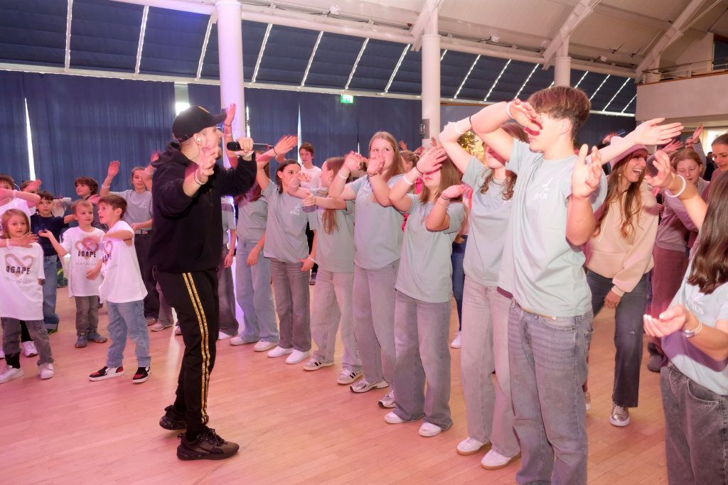 Lorenzo Di Martino ist Jahrgang 1996, kommt aus Frankfurt am Main und hat sich mit seiner ehrlichen und tiefgründigen Musik einen Namen gemacht. Der Künstler zeigte mit seinen Songs, dass Rap nicht von Geld, Gewalt oder Drogen geprägt sein muss, sondern auch von positiven Werten und echter Lebensfreude erzählen kann. Und die präsentierten die Kinder und Jugendlichen an diesem Nachmittag, machten begeistert mit, als der Sänger „sich unters Volk mischte“ und gemeinsam mit den Jugendlichen coole Tanz-Moves vollführte.