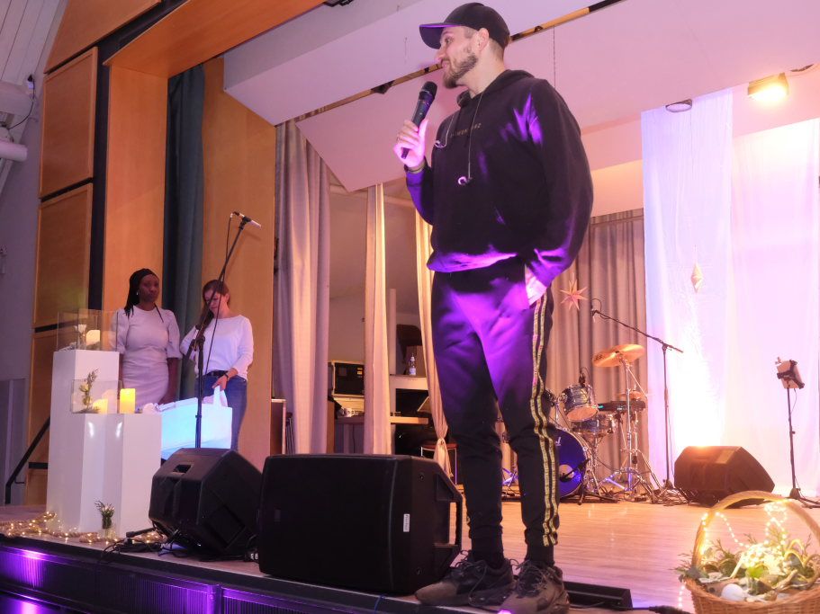 Die Veranstaltung richtete sich an Jugendliche und Familien mit Kindern. Darüber hinaus fand auch ein kleiner Weihnachtsmarkt mit Waffeln, Punsch, Glühwein, Kaffee und Kuchen und Ständen mit tollen Geschenkideen statt. Elke und Frank Miller, Mitglieder der Freien Christengemeinde und Eltern stellten an diesem Nachmittag, bevor der Rapper die Bühne betrat, die Schule und ihre Schulmaxime kurz vor: „Kindern Freude am Lernen zu vermitteln, ihre Stärken zu fördern und sie ganzheitlich auf das Leben vorzubereiten“.