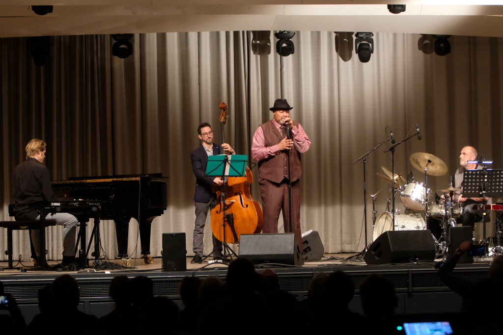 Bad Wurzach – Gemeinsam mit dem Michael Porter Trio tritt Ray Brown Jr. in vielen Städten mit der „Tribute to Ella Fitzgerald-Tour“ auf. Und dank Michael Porter, Schlagzeug-Lehrer an der Bad Wurzacher Jugendmusikschule, gab er nun auch im Kursaal der Kurhaus Kulturschmiede ein Benefiz-Konzert zugunsten von ukrainischen Kindern.