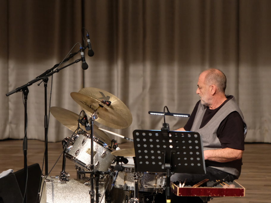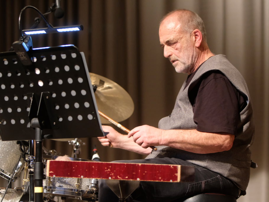 Sein ihm eigener Humor war an diesem besonderen Konzertabend deutlich spürbar, und Michael Porter hatte bei seiner Begrüßung nicht zu viel versprochen: Es wurde ein richtig amüsanter Abend. Was auch an seinen Mitmusikern lag. Da wäre Martin Meixner, der erstmals beim Michael Porter Trio an den Tasteninstrumenten saß. Er definierte die Bedeutung von Multiinstrumentalist neu: Den Flügel spielte er mit links, die Rechte hieb auf die Tasten seiner Miniorgel ein. Gleichzeitig! Zum Zweiten am Kontrabass Andreas Schmid, der garantiert nicht als Slowhand gelten kann, so flink wie seine Hände über die dicken Basssaiten flitzten. Und schließlich Michael Porter, dessen schlagzeugerische Fähigkeiten eh außerhalb jeder Diskussion stehen.