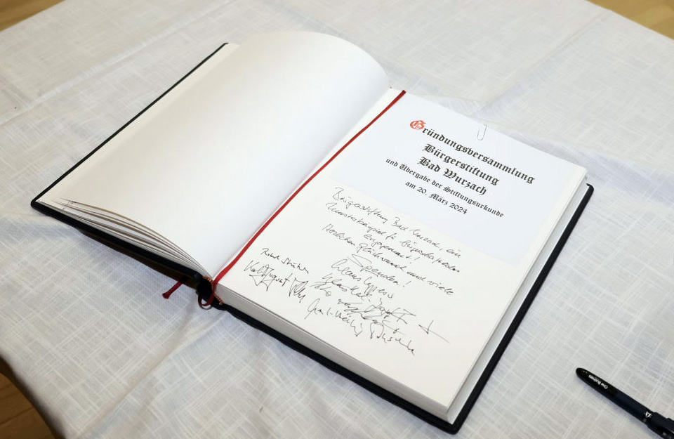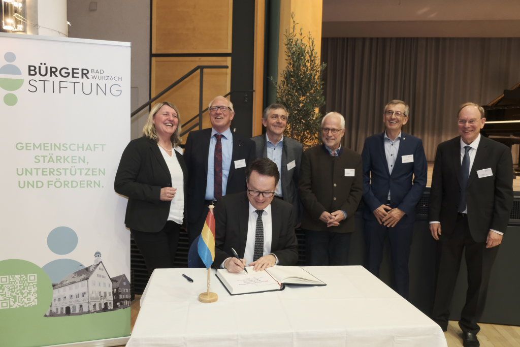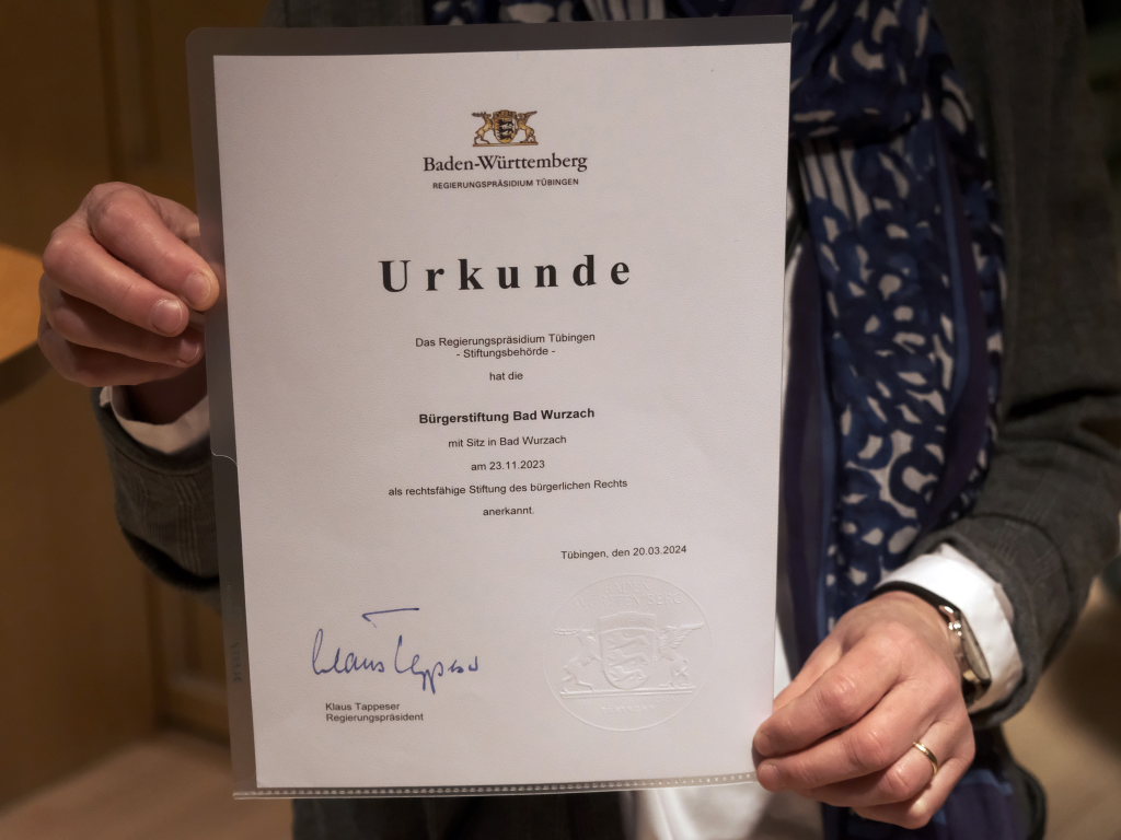 Bereits am 23. November 2023 hatte das Regierungspräsidium Tübingen die Bürgerstiftung Bad Wurzach als rechtsfähig anerkannt. Mehr als 100 Zustiftungen und Spenden ermöglichten diese Stiftungsgründung und haben der Stiftung zu einem erfolgreichen Start verholfen; die gesamte Bürgerschaft war zu der Feier eingeladen, in deren Rahmen Regierungspräsident Klaus Tappeser nun die Stiftungsurkunde übergab.