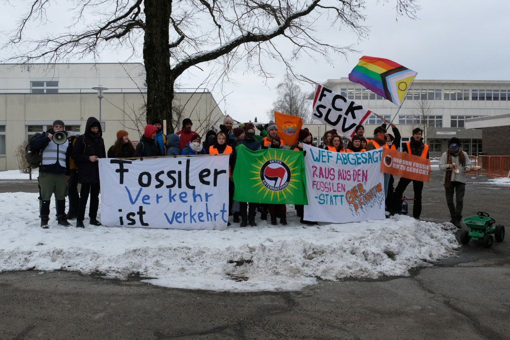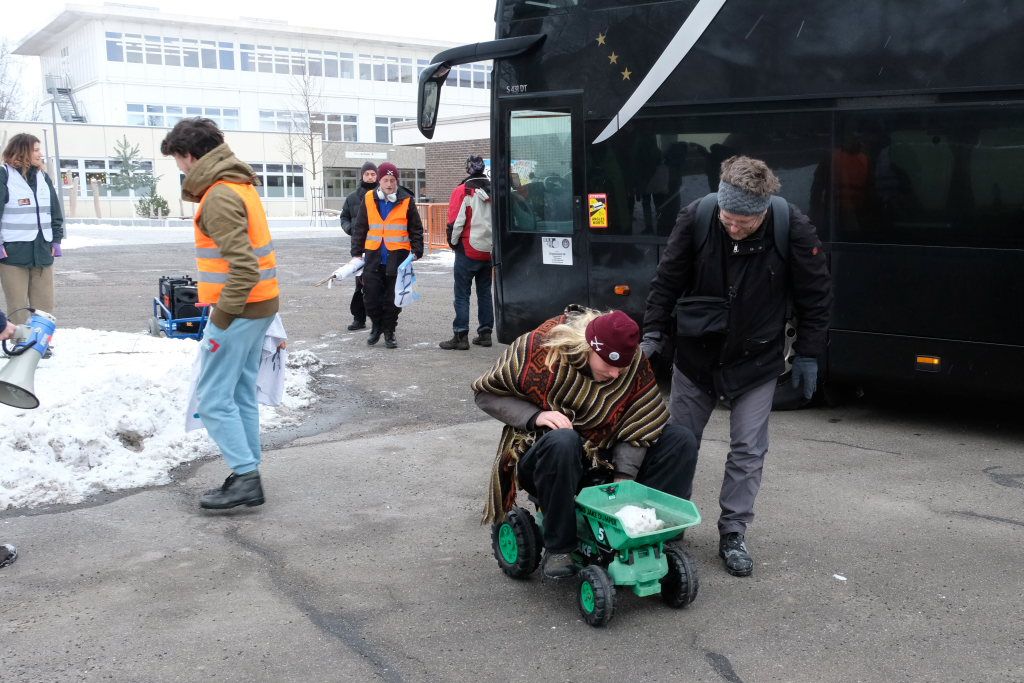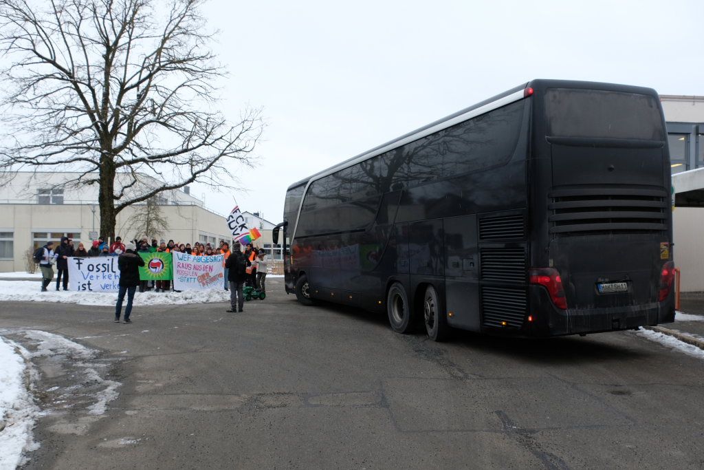Mit einem in Berlin gestarteten Bus waren Aktivisten, die in der ganzen Bundesrepublik zugestiegen waren, aus Davos vom Weltwirtschaftsforum zurückgekehrt und hatten in Bad Wurzach Halt gemacht. Unter ihnen war auch Lukas Häfele, der Organisator der Demo an diesem frostig kalten Montagmorgen. Trotz der Verstärkung mit Klimaaktivisten aus Berlin und anderen Bundesländern aus dem Bus, dessen Motor während des gesamten Zwischenstopps beim Schulzentrum lief, blieben die Schüler zwar neugierig, aber gingen nicht auf das Angebot des Veranstalters ein, selbst das Wort zum Thema Klima zu ergreifen. Zwei Jungs mit Migrationshintergrund bezogen dafür sehr eindeutig gegen Schwule und Lesben Stellung.