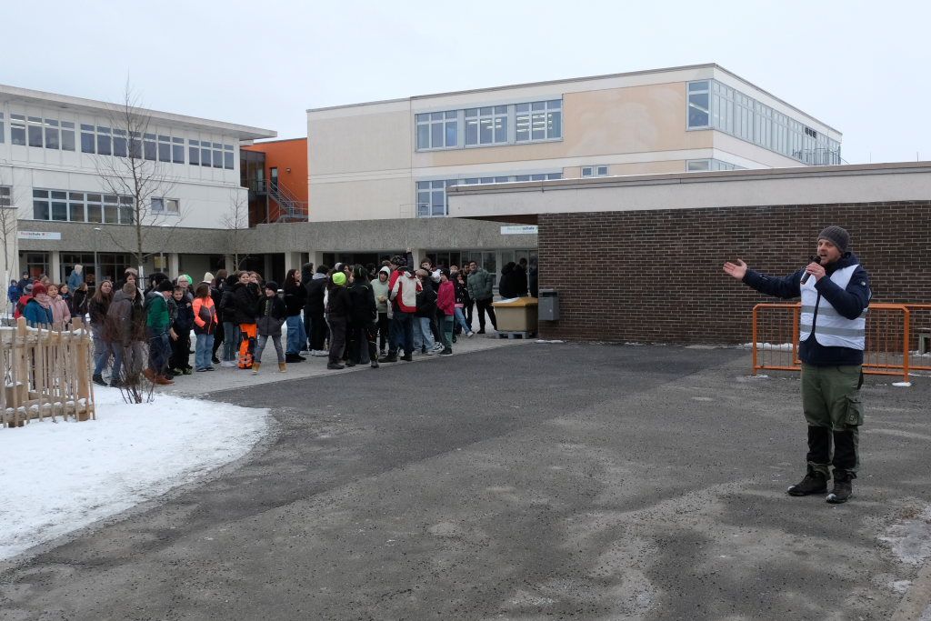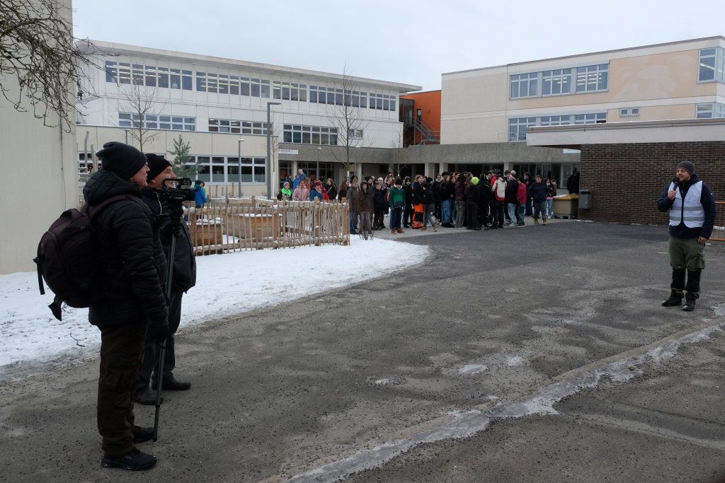 Beim Schulzentrum näherte sich ein Mann mit Videokamera den Schülern, um mit ihnen über die Aktion zu sprechen. Lukas Häfele wollte dies nicht zulassen, so dass es zu einem kurzen Wortwechsel kam, ehe sich der Filmer wieder zurückzog.