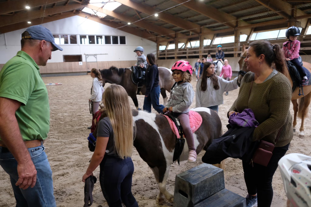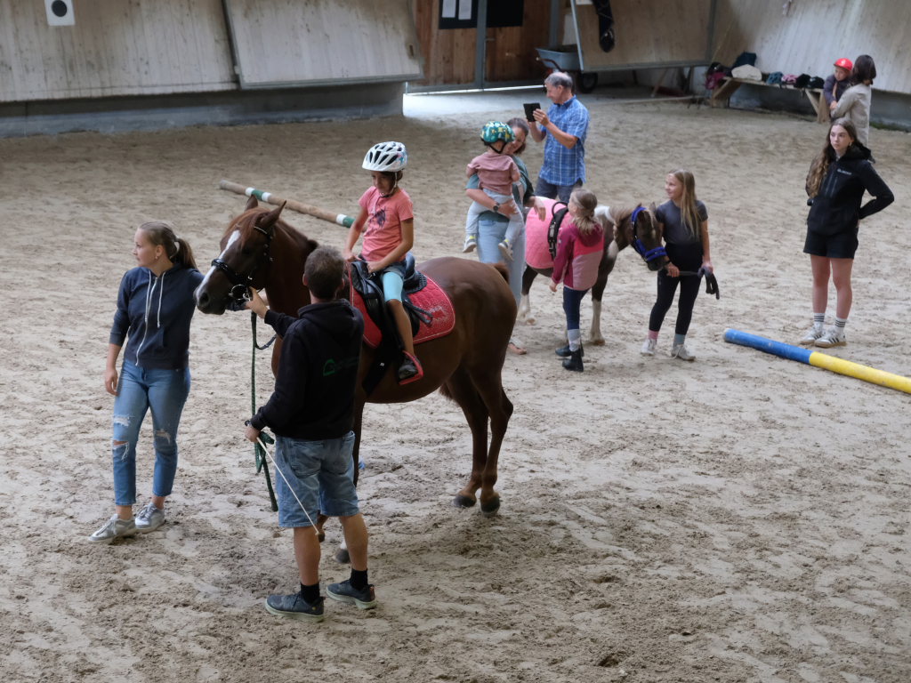 Viel Mühe hatten sich die zahlreichen Helferinnen und Helfer, wie zum Beispiel Vereinsvorstand Bernd Burkhart, mit dem Kinderprogramm gemacht. Ab 11.00 Uhr am Sonntagmorgen gab es dieses Highlight für pferdeverliebte Kinder. Vor allem die Anmeldung für eine geführte Reitrunde auf einem Pony oder einem der großen Reitpferde war immer dicht umlagert. Aber auch das Kinderschminken gehört einfach dazu und wurde von fleißigen Damen gerne nach den Wünschen der kleinen Kunden durchgeführt. Diese Neuerung bei einem der großen Turniere darf der Reitverein als Erfolg verbuchen, kann doch auf diesem Wege das eine oder andere Kind für den Reitsport gewonnen werden.