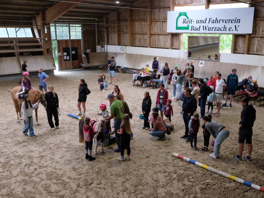 Bad Wurzach – Höhepunkt des Turniers war am Sonntag (17.8.) eine Dressurprüfung Klasse S*, nachdem zuvor viele Helfer ein gerne wahrgenommenes Kinderprogramm in der Reithalle geboten hatten.