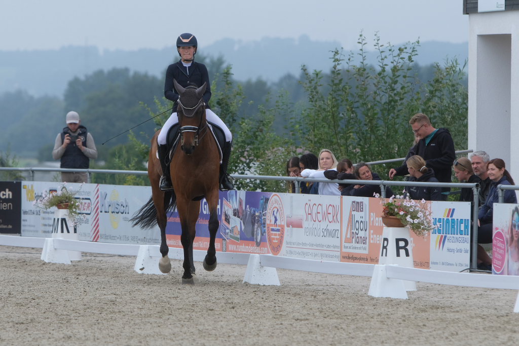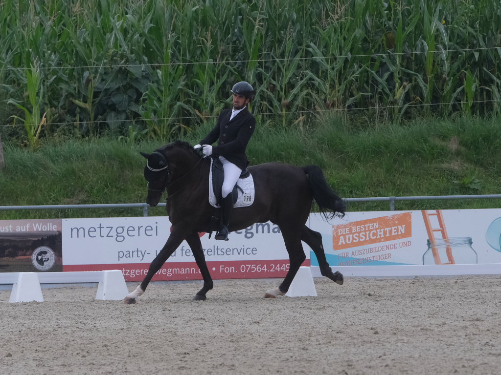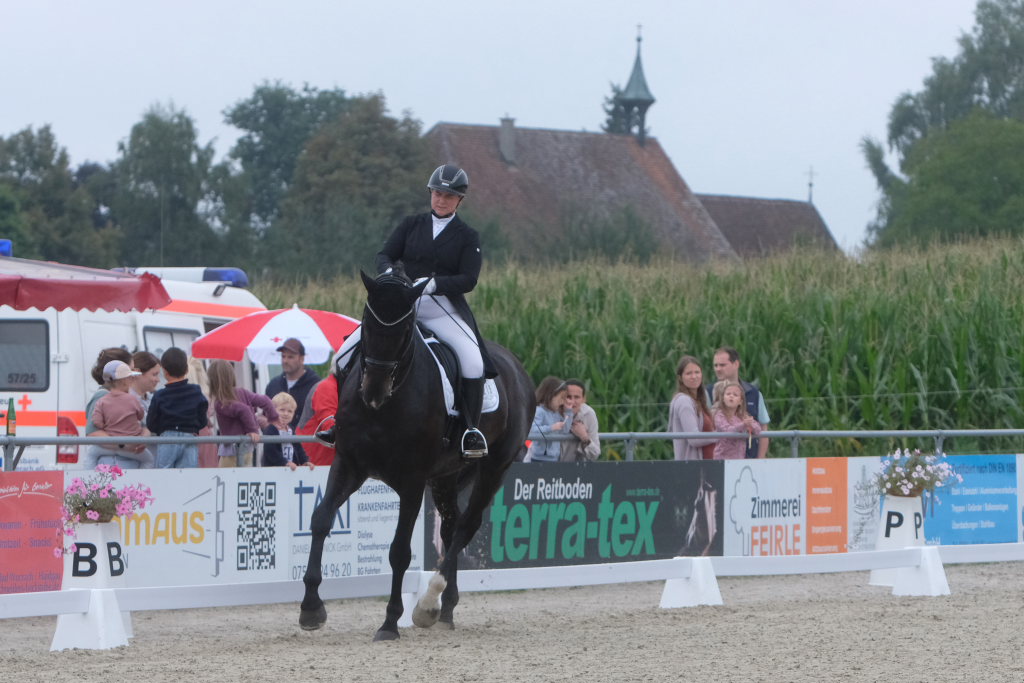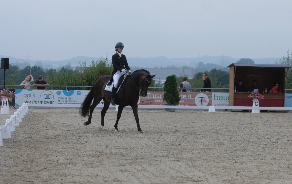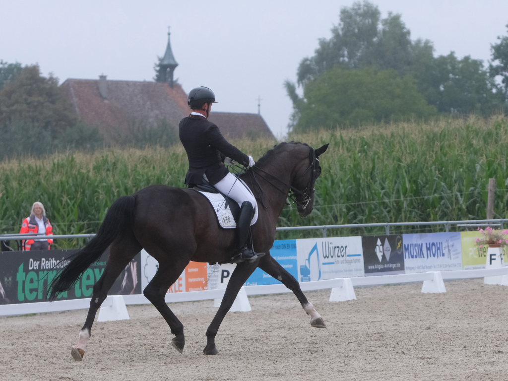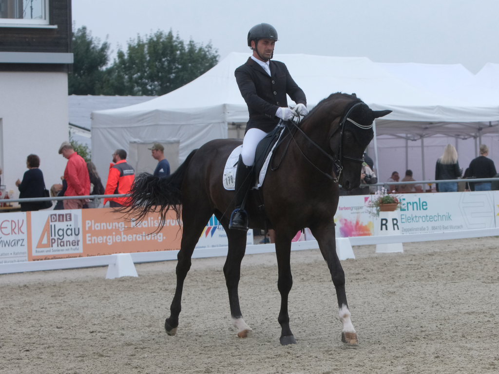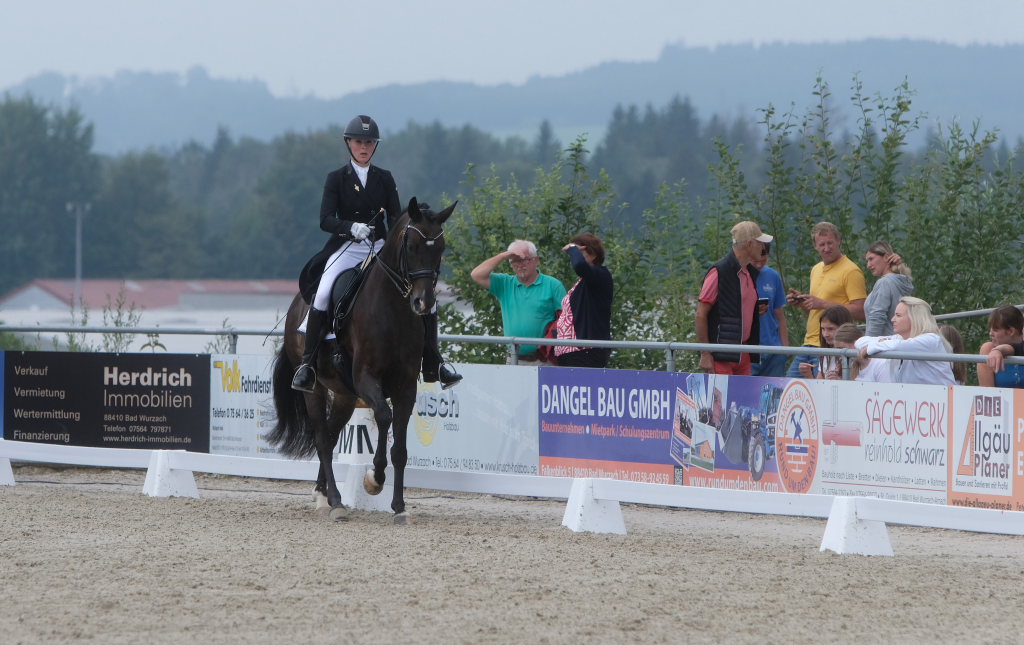 Bei der samstagmorgendlichen Dressurpferdeprüfung Kl.A * kam Raphael Tizian Schwarz vom RFV Bad Wurzach gleich mit zwei Pferden in die Wertung. Er kam mit Dante Quentano auf den geteilten fünften Platz und mit Imperia S3 auf den siebten Platz. Es gewann Margit Hagel vom RFV Zollenreute mit Vajana 8.