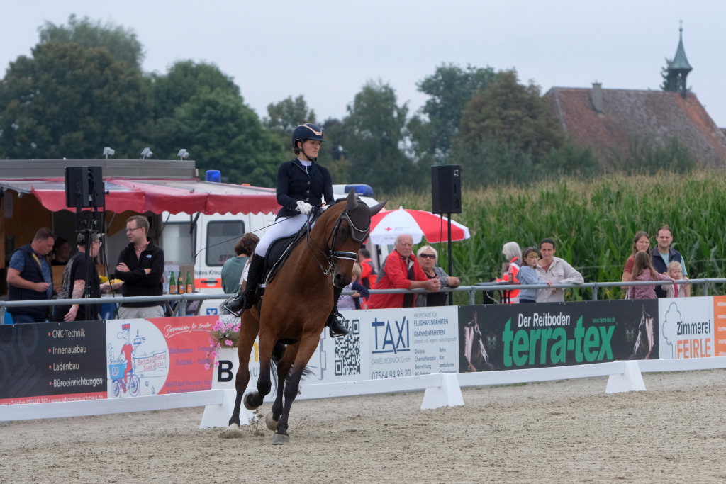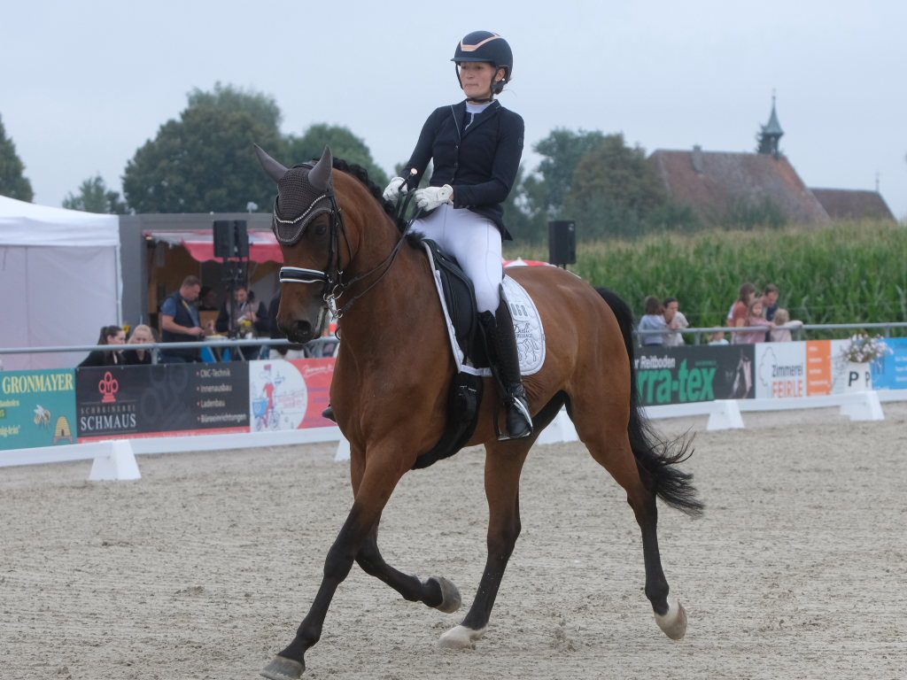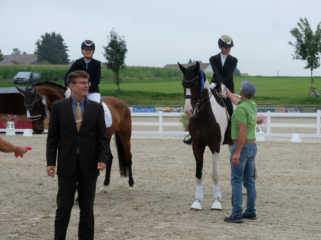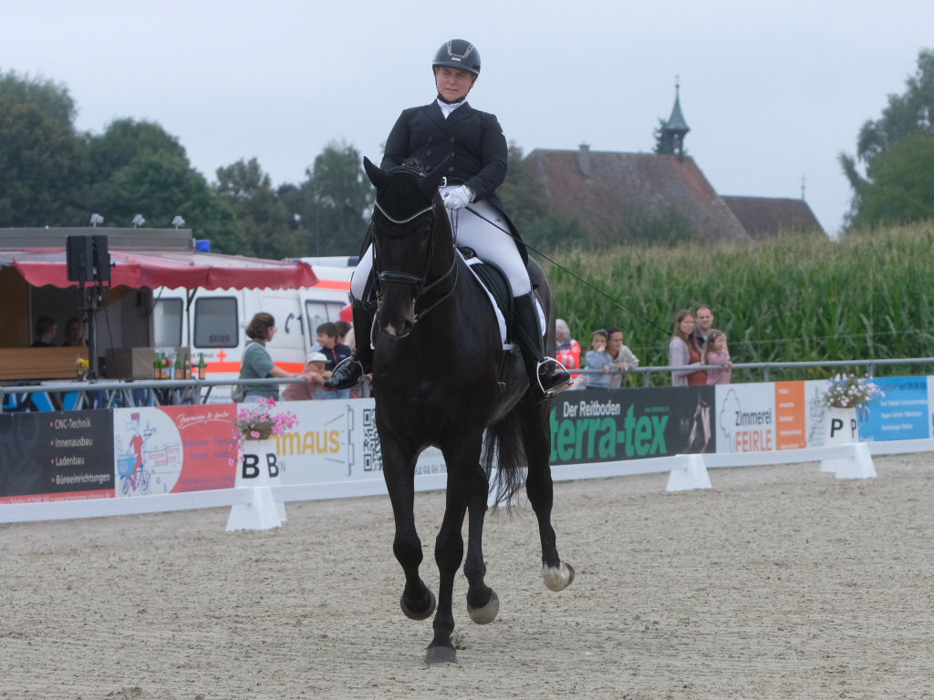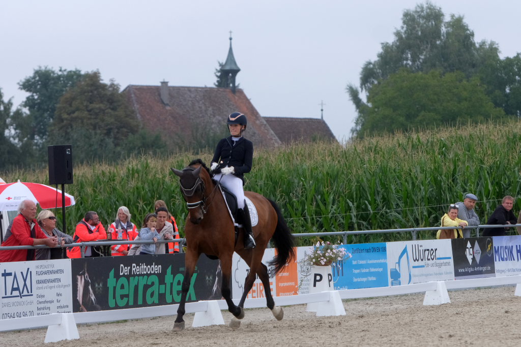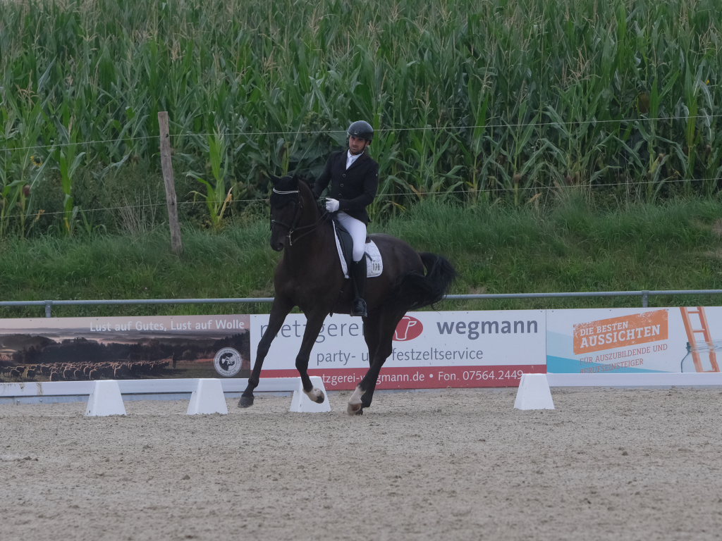 Bei der samstagmorgendlichen Dressurpferdeprüfung Kl.A * kam Raphael Tizian Schwarz vom RFV Bad Wurzach gleich mit zwei Pferden in die Wertung. Er kam mit Dante Quentano auf den geteilten fünften Platz und mit Imperia S3 auf den siebten Platz. Es gewann Margit Hagel vom RFV Zollenreute mit Vajana 8.