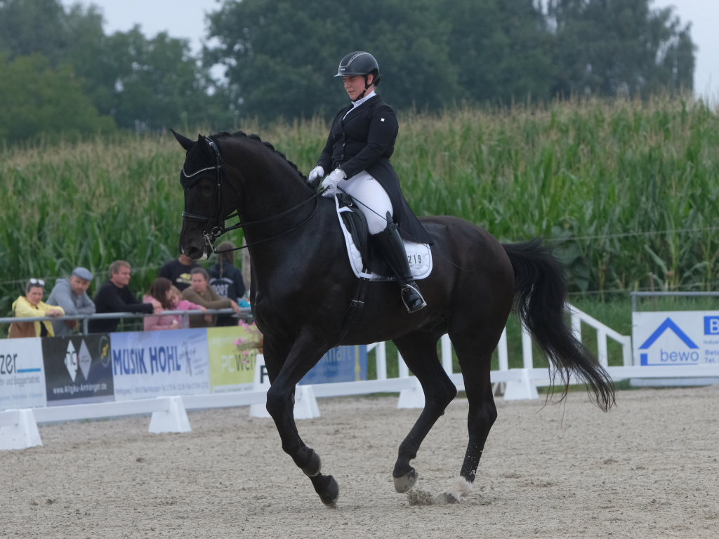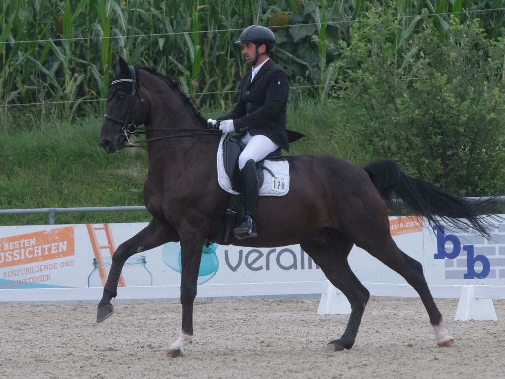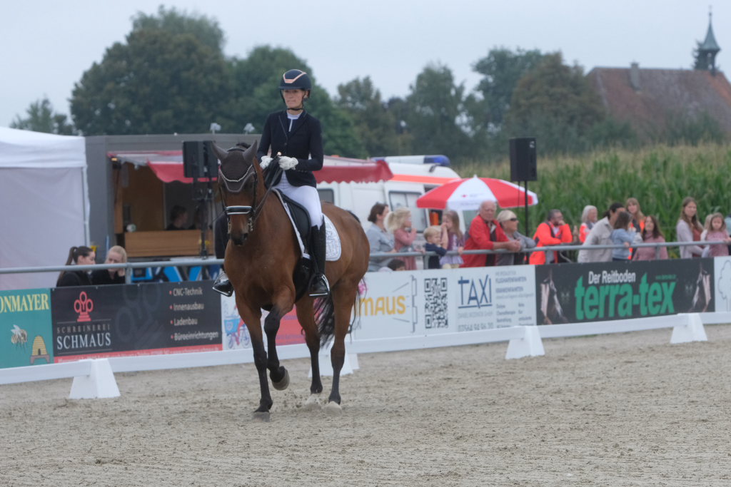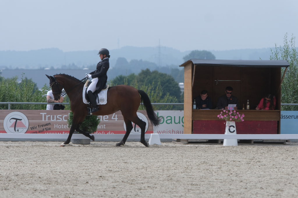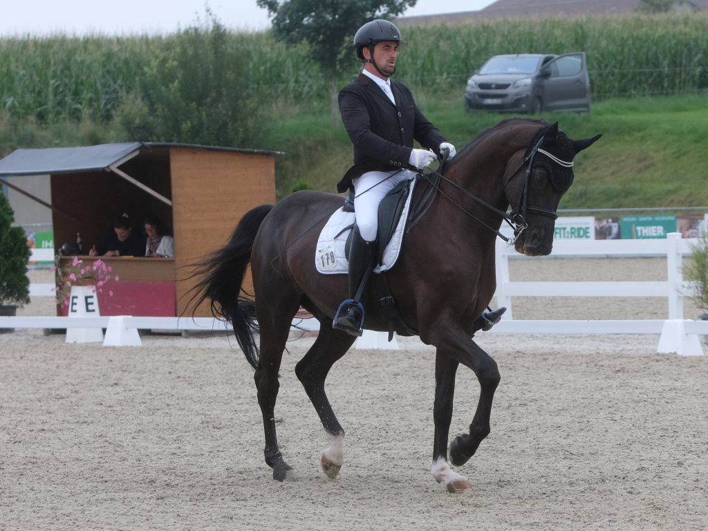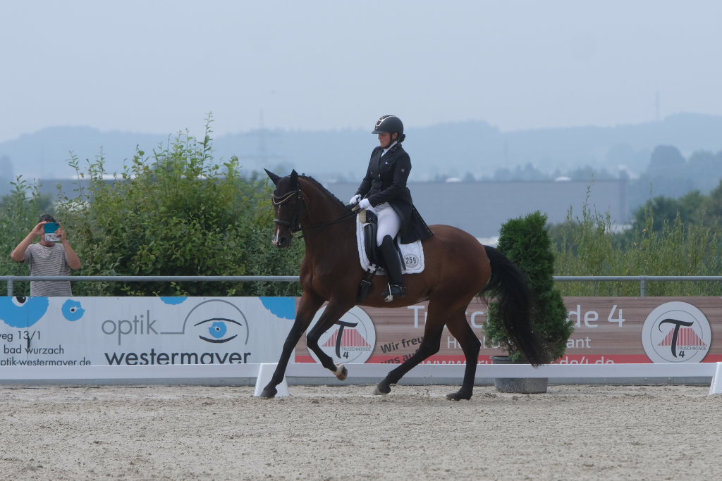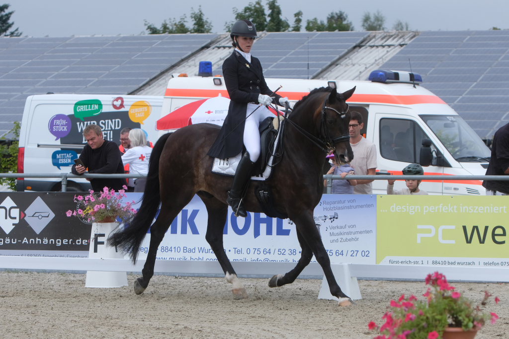 Bei der samstagmorgendlichen Dressurpferdeprüfung Kl.A * kam Raphael Tizian Schwarz vom RFV Bad Wurzach gleich mit zwei Pferden in die Wertung. Er kam mit Dante Quentano auf den geteilten fünften Platz und mit Imperia S3 auf den siebten Platz. Es gewann Margit Hagel vom RFV Zollenreute mit Vajana 8.