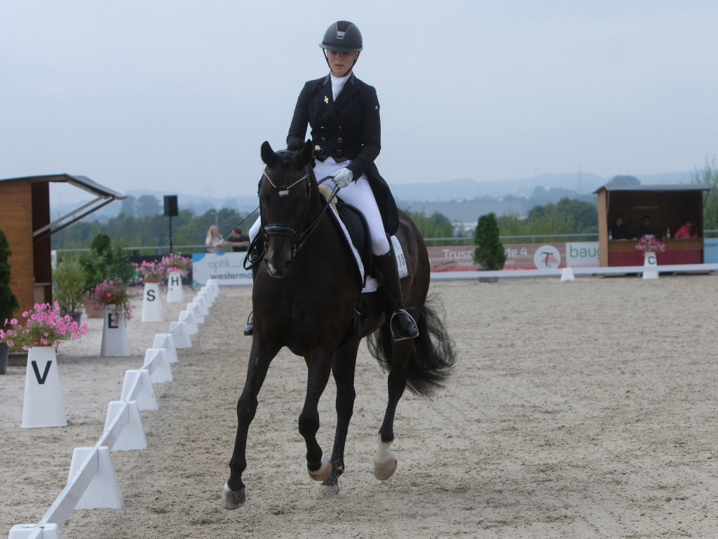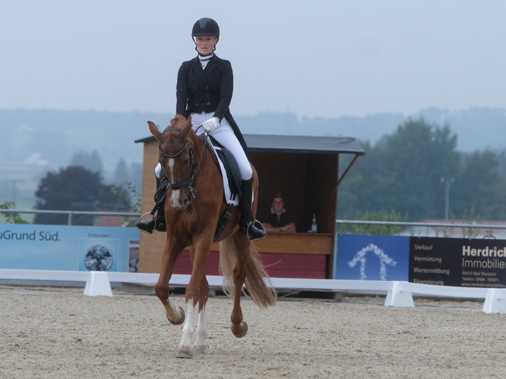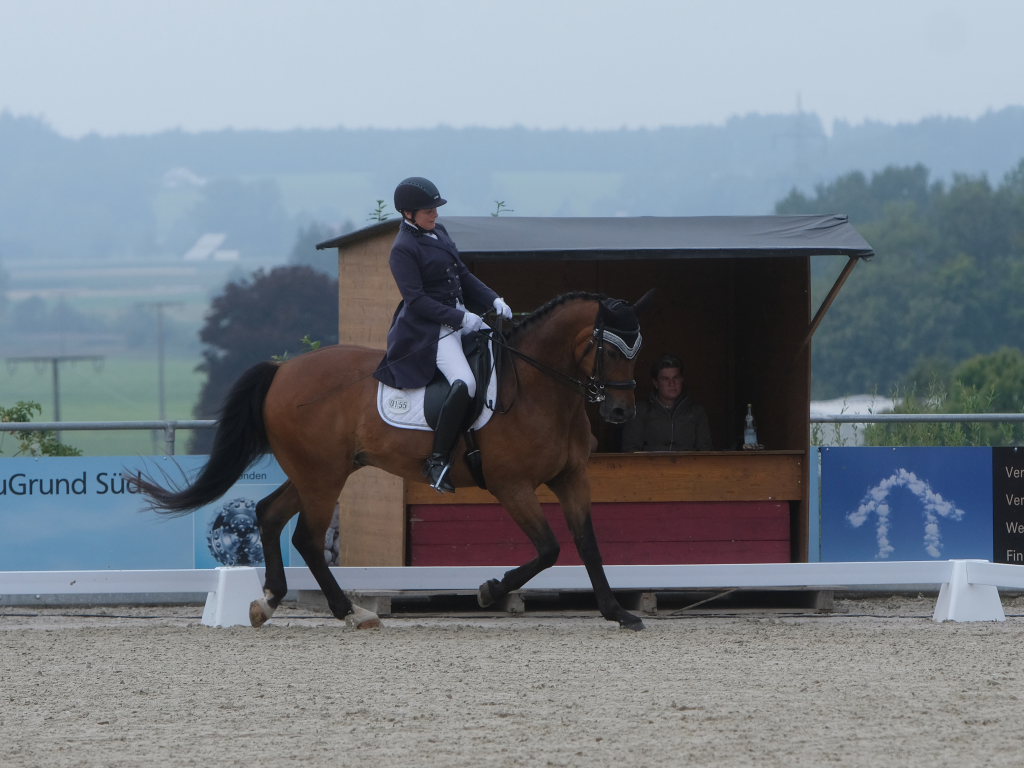 Bei der Dressurprüfung KL. S* Kandare, dem Höhepunkt des Turniers am Sonntagnachmittag, machten Reiter aus der Region den Sieg unter sich aus. Es gewann Corinna Butscher auf Royal Universe vom PSV Leutkirch-Haid mit 72, 05 % deutlich vor Marcel Wolf (RFV Bad Waldsee) auf Fabiano A mit 69,48%. Katharina Sieger schaffte mit Beckham GT und 68,84% den vierten Platz und sie brachte ihr zweites Pferd Fleurette 20 noch auf den siebten Platz.