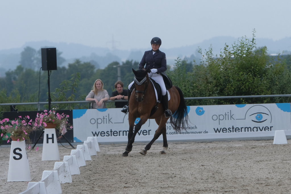 Apropos Mittagszeit: das Küchenteam des Reitvereins hatte sich wieder an beiden Tagen einige Schmankerln einfallen lassen. Dafür zollte die Vorstandschaft und die Gäste ihnen großes Lob. Ebenfalls erhielten alle Helfer, egal in welcher Funktion, von der Vorstandschaft ein dickes Lob für die Durchführung des Turniers. Und was wäre ein Verein ohne die treuen Sponsoren? Ohne diese, die u.a. die Preise für die einzelnen Prüfungen stifteten, könnten Vereine Turniere dieser Größenordnung, zu denen Paare aus ganz Oberschwaben und dem Allgäu (und auch darüber hinaus) anreisten, gar nicht durchführen.