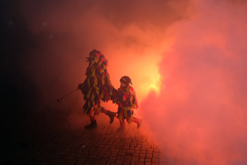 Den Abschluss machten dann die wilden Muetes, die an diesem Abend wohl dem Regen am besten trotzten, da sie die zahlenmäßig größte Gruppe bildeten. Bei einigen fetzigen Musikstücken des Fanfarenzuges wurde das Gschell von Riedmeckeler und Muetes aber doch noch „entstaubt“ und die Hästräger brachten sich damit für die neue Fasnetssaison in Stimmung, die dieses Mal am 5. März mit der Aschermittwoch-Geldbeutelwäsche und dem letzten Arbeitseinsatz enden wird.
