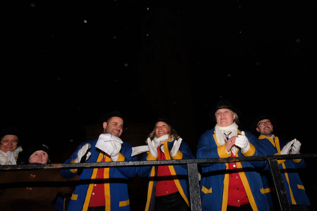 Bad Wurzach – Lange ließ der Regen im November auf sich warten, doch ausgerechnet exakt als die Kirchenglocken von St. Verena an diesem 11.11. zum Gebets-Läuten ansetzten und der Fanfarenzug durch die „Nebelpforte“ bei der Bad-Wurzach-Info schritt, um die Fünfte Jahreszeit einzuläuten, öffnete auch der Himmel seine Schleusen.
