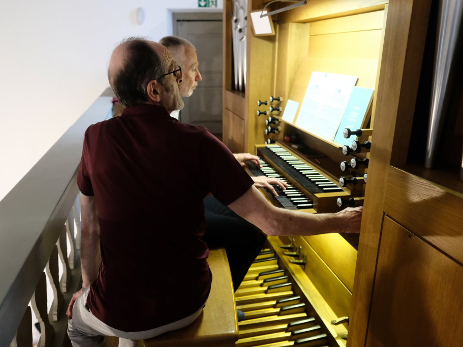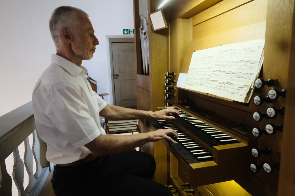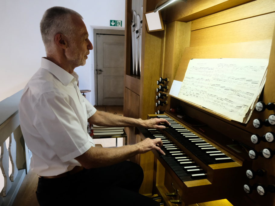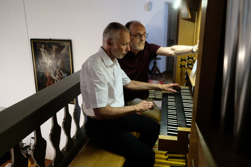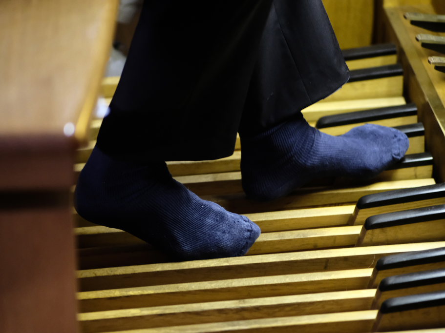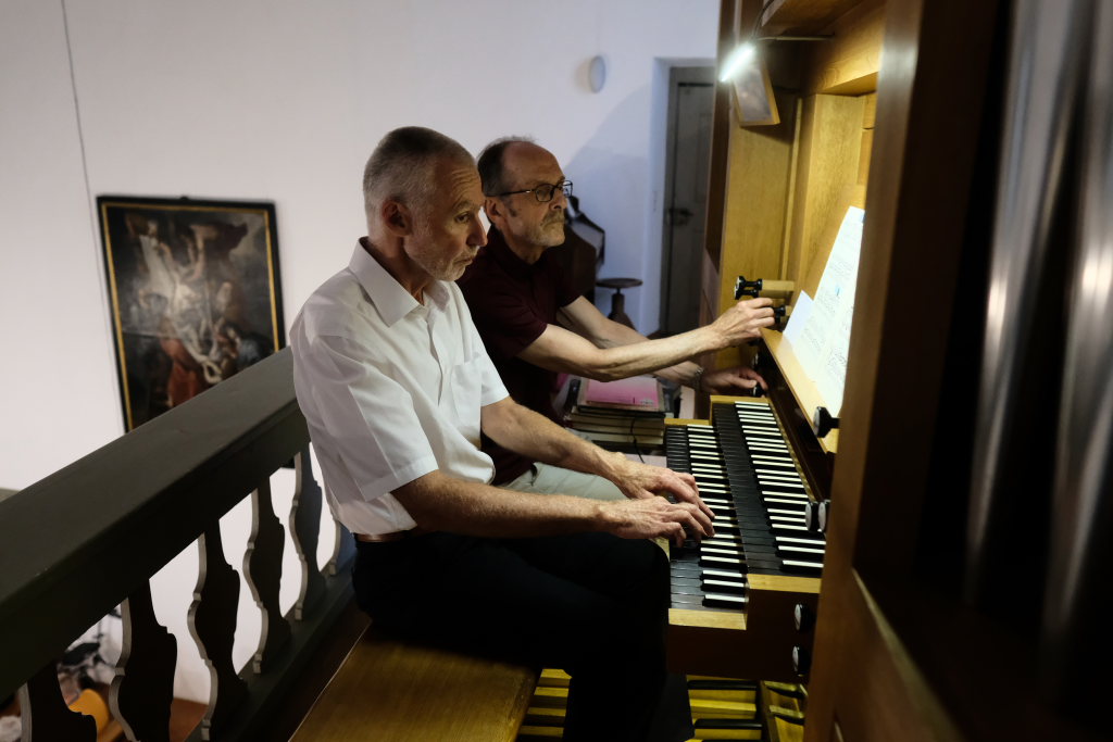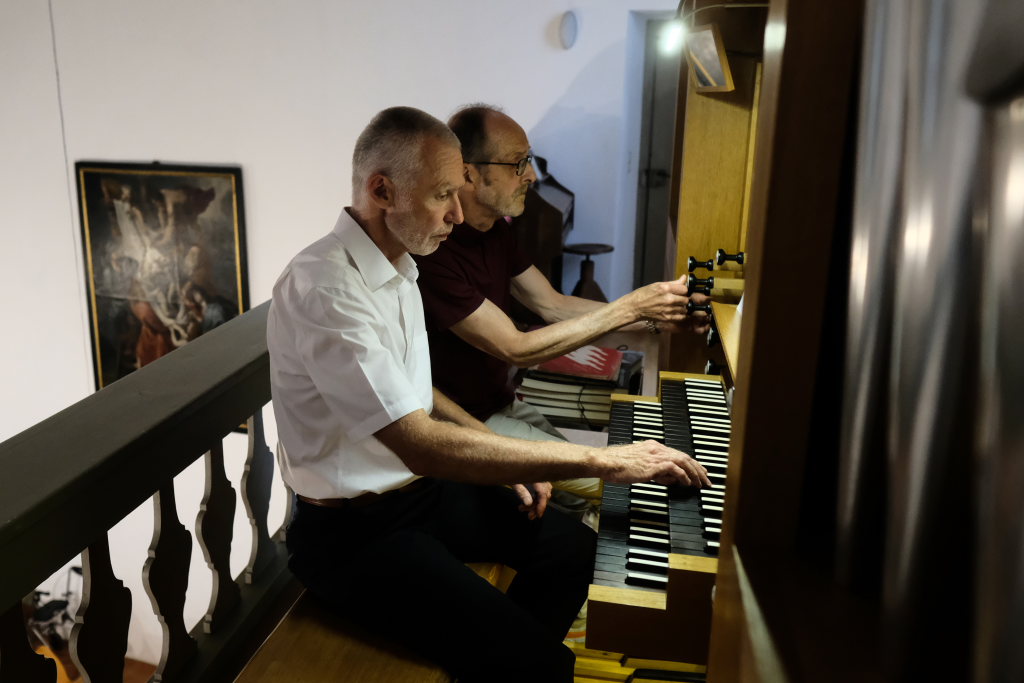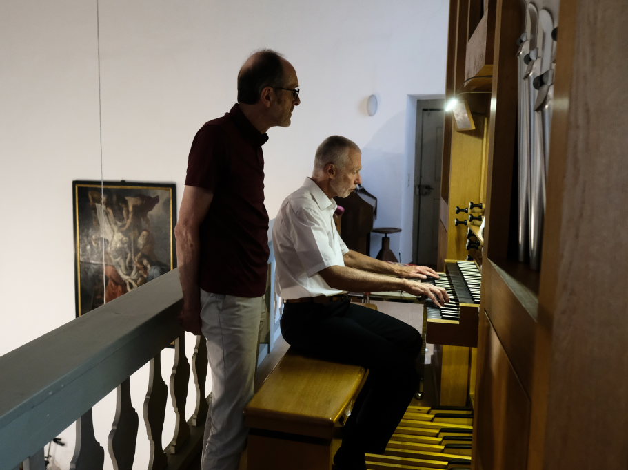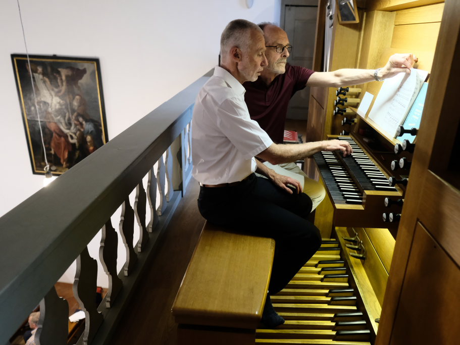 Ähnliche Virtuosität wurde beim letzten Stück von den beiden gefordert. Mit Petr Eben´s „Fantasie 1 aus Sonntagsmusik-Musica dominicalis (1958) aus dem Zyklus für Orgel“ hatte Häusle eine Komposition eines Vertreters der modernen klassischen Musik aus der Tschechischen Republik ausgewählt. Das Stück stellt in seiner Aussage eine im Wortsinne nicht alltägliche, sondern festlich künstlerische Musik dar, die ebenfalls mit viel Tempo aufwartete.