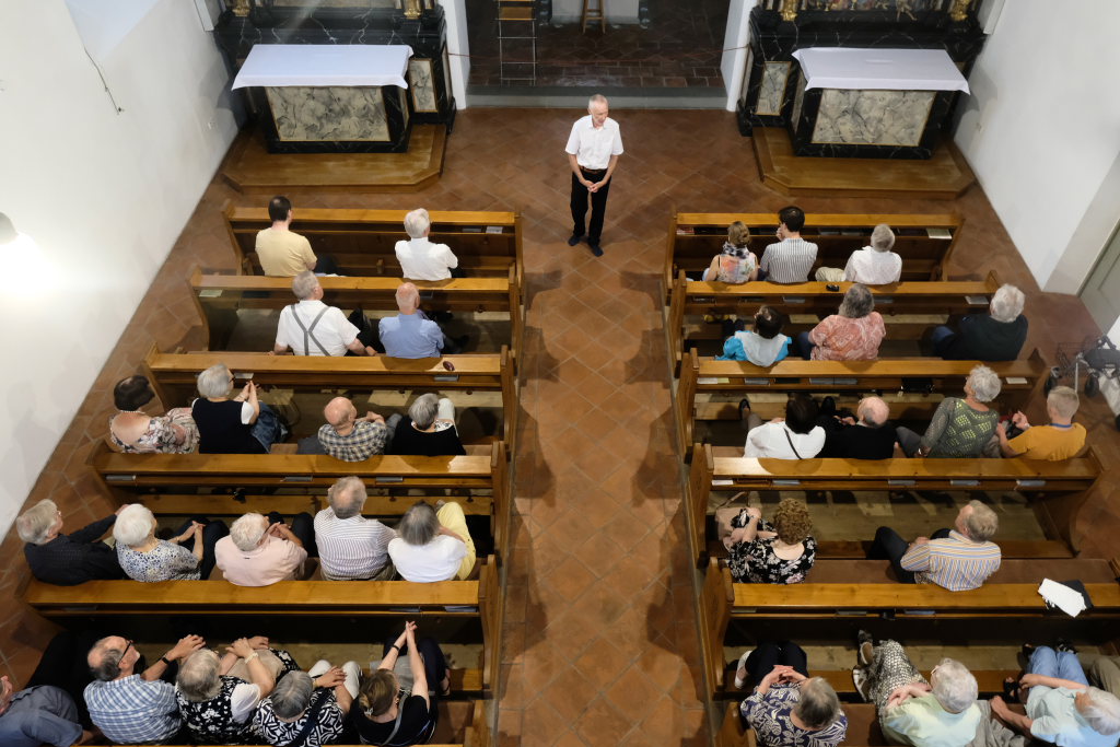 Häusle stieg nach diesem gelungenen Einstieg von der Orgelempore herab und wies in seinen Erklärungen auf einige kompositorischen Besonderheiten dieser fast schon elitär zu nennenden Bach’schen Orgelliteratur hin.