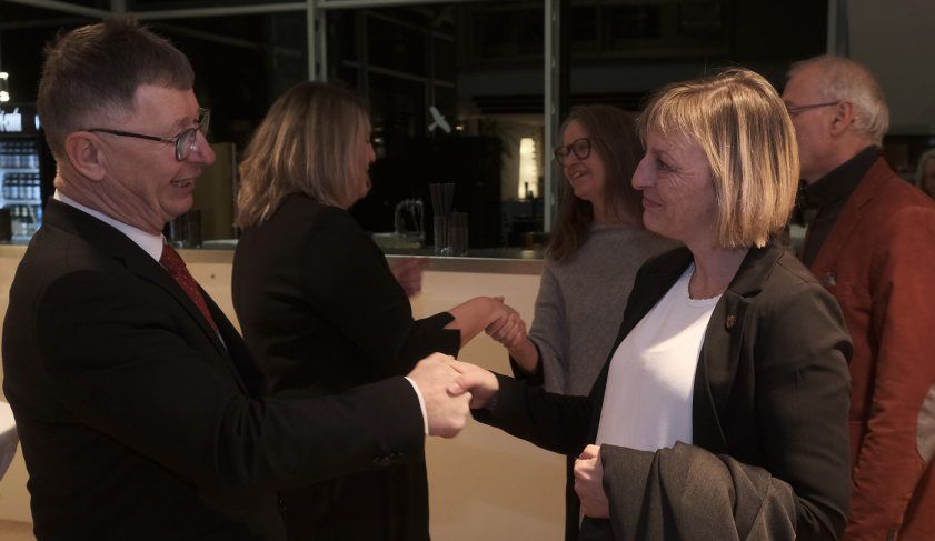 Nach einem letzten Musikstück der Stadtkapelle wurden rasch die Stühle zur Seite geräumt und bei Getränken und Häppchen wurden viele gute Gespräche geführt.