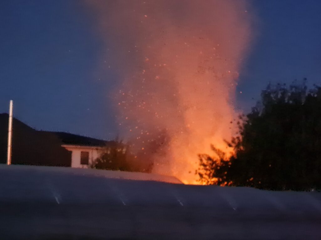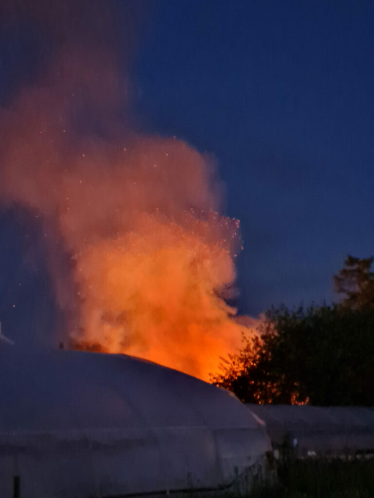 Der Feuerschein, von der Gärtnerei her gesehen.