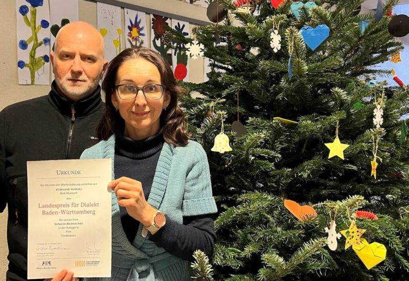 Bad Wurzach – Die Landesregierung hat zusammen mit dem Dachverband der Dialekte Baden-Württemberg erstmals den “Landespreis für Dialekt” verliehen. Geehrt wurden künstlerische Beiträge, die sich auf unterschiedliche Weise für eine lebendige Dialektlandschaft einsetzen. Die Werkrealschule Bad Wurzach war mit ihrem Video-Beitrag “Scheene Weihnachta – Schwäbisch für Alle” eine der 330 Bewerbungen und erhielt in der Kategorie “Film” einen mit 2000 € dotierten Förderpreis für das gelungene Weihnachtsgrußvideo von Lehrer Aliaksandr Kulbaka und seiner Frau Alena Semianiuk.