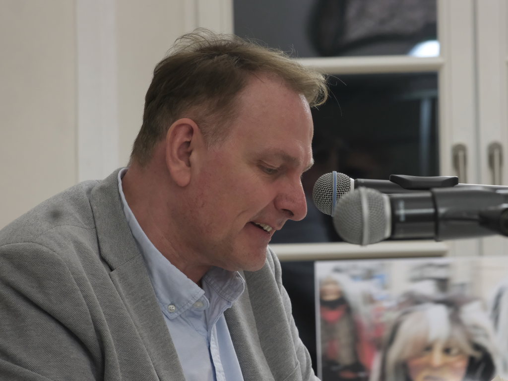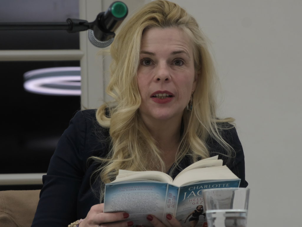 Die in München geborene, jetzt mit ihren fünf Kindern am Bodensee wohnende Journalistin, ist der weibliche Part der – wie sie sich selbst bezeichnen – Schreibzwillinge. Sie ist Leiterin der Bast-Medien GmbH und baut derzeit ihre eigene Schreibschule auf. Per Notebook und Zoom waren einige ihrer Schüler bei der Lesung live dabei. Sie erhielt mehrere Auszeichnungen, darunter den Lokaljournalistenpreis der Konrad Adenauer Stiftung in der Kategorie Geschichte.
