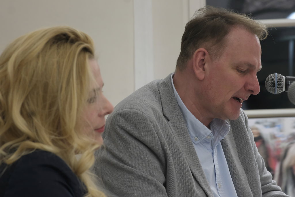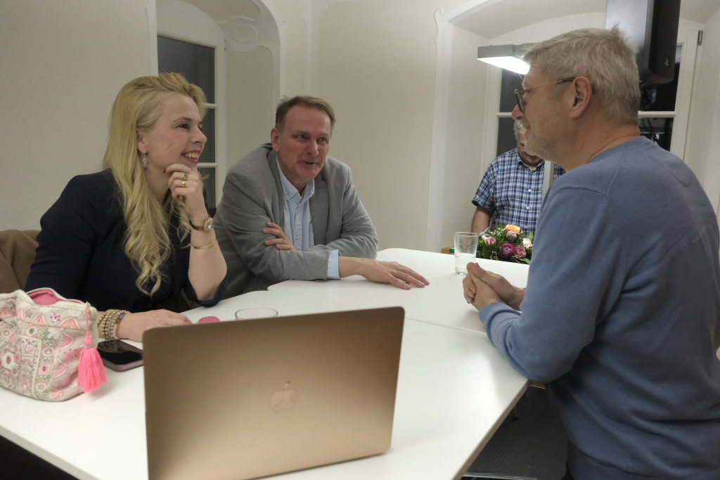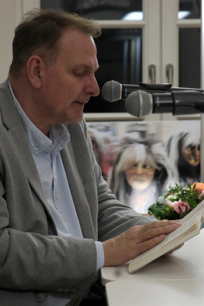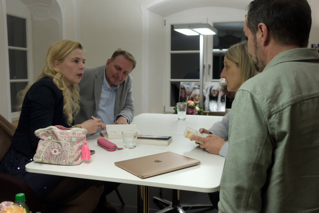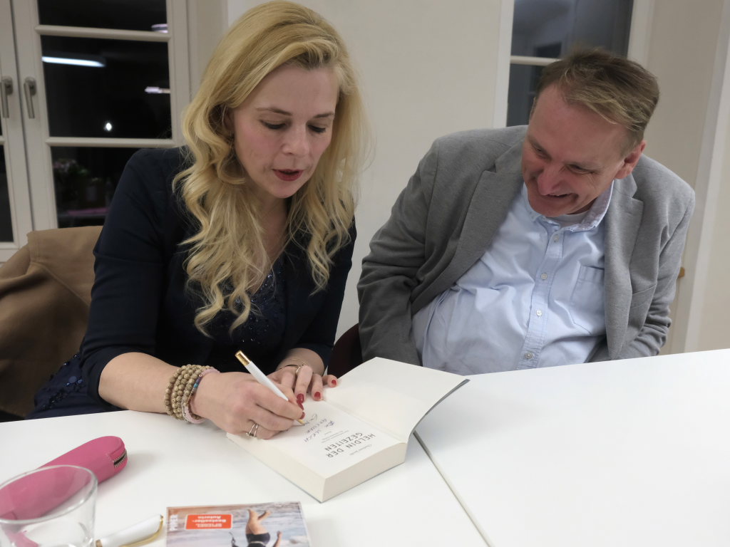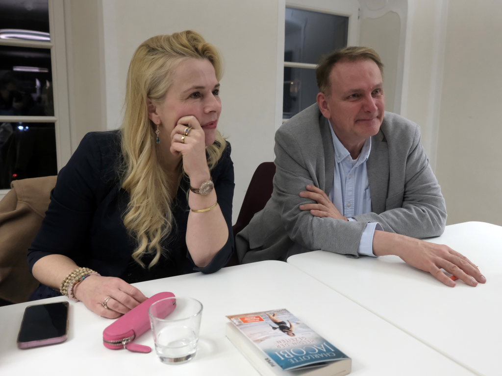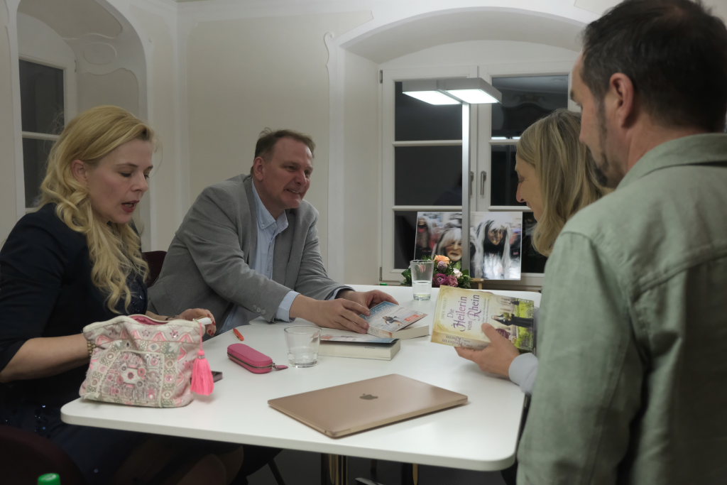 Bevor die Beiden in die Lesung einstiegen, erzählten sie ein wenig zu ihrer Arbeitsweise, zum Beispiel dass sie bei der Vorbereitung die Orte der Handlung gemeinsam bereisen. Und auch, dass sie bei der Umsetzung der Recherchen in Textform – beinahe unheimlich – gleich ticken, weswegen sie sich selbst als „Schreibzwillinge“ bezeichnen.