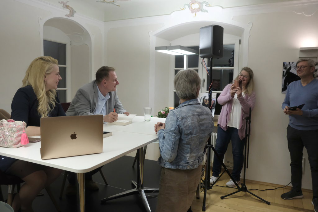 Nach dem Ende der Lesung, für die die Schreibzwillinge den verdienten Applaus ernteten, war es Zeit für Fragen, wobei Eva-Maria Bast sich vorab outete, eine besondere Beziehung zu Bad Wurzach zu haben: Ihre Großmutter, die sehr gemocht hatte, habe als sie selbst noch ein kleines Mädchen war, einmal hier eine Kur gemacht und danach von einem „Kurschatta“ sprach ein Ausdruck, den sie damals noch nicht kannte.