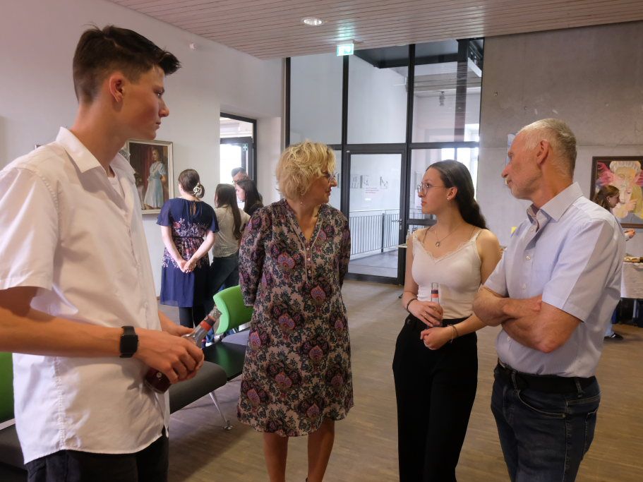 Zwei Schüler der 10c präsentierten ein erste Folge eines Podcast über das Leben und Wirken von Pater Egino, der über den Kunstunterricht hinaus auch noch den Sportverein DJK Schwarz-Gelb gegründet hatte, sowie über das Werk selbst und was davon erhalten bleiben soll.