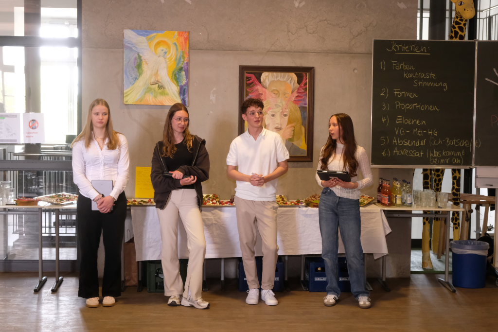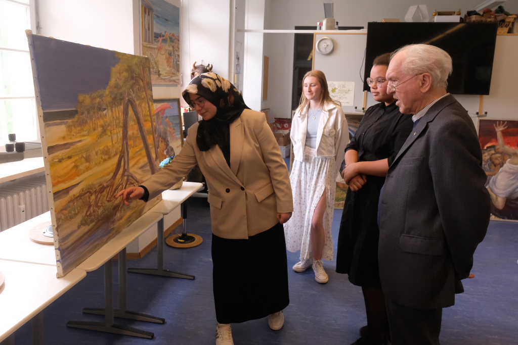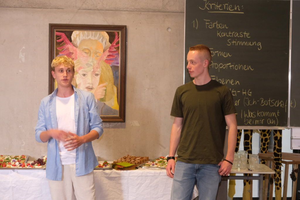 Die Kriterien, nach denen die Schülerinnen und Schüler in den letzten Monaten die Bilder sortiert hatten, waren zum einen die Farbgebung, die Kontraste und die Lichtstimmung. Ein weiteres Kriterium waren Formen und Proportionen etwa bei Menschenbildnissen. Die Staffelung in Vordergrund, Mittelgrund und Hintergrund, um dem Bild Tiefe zu geben, floss ebenfalls in die Beurteilung ein. Und schließlich war ein weiteres Kriterium, wie wirkten die Bilder mit ihrer Botschaft auf die sie betrachtenden Personen.