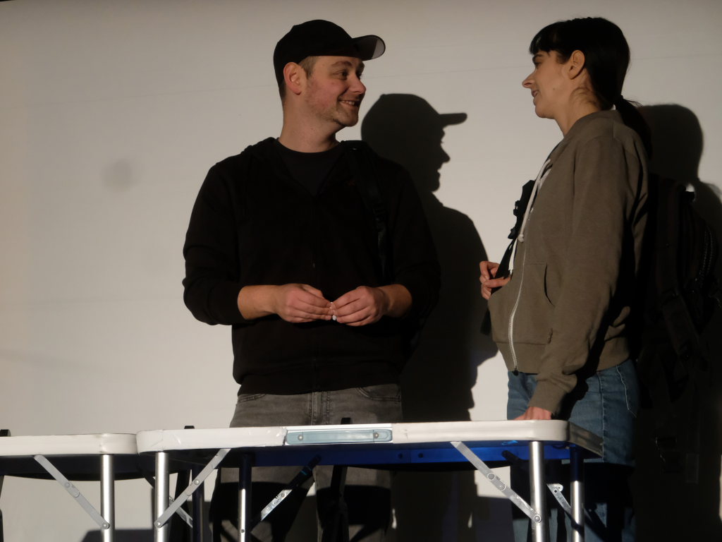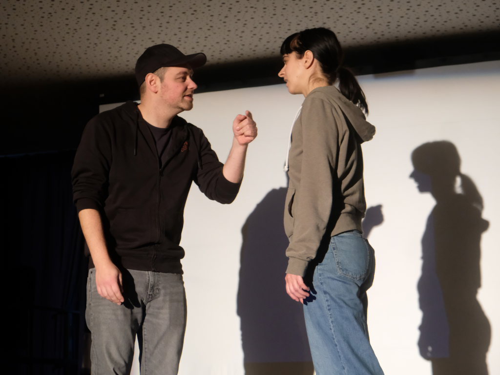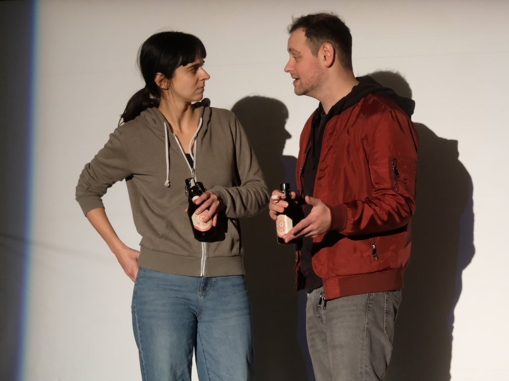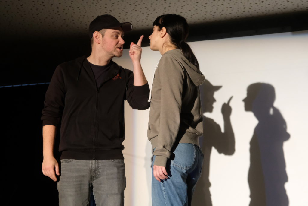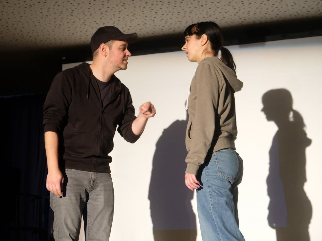 Die ehemalige besten Freunde Tarik (Stefan Vitelariu) und Lina (Marlies Bestehorn) giften sich am Ende des Stückes an – radikalisiert von ihrer jeweiligen Gruppe.