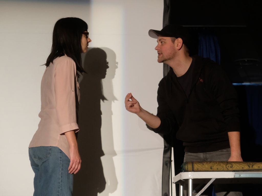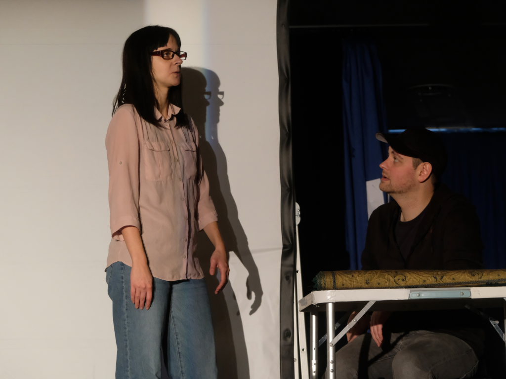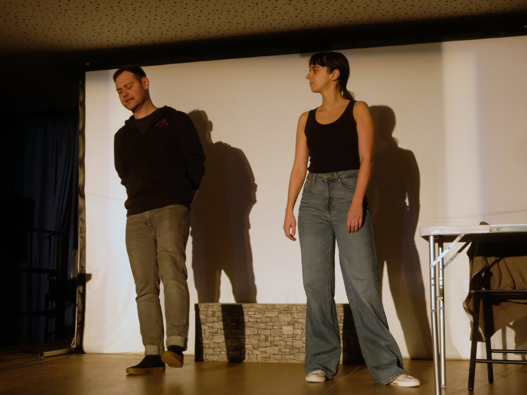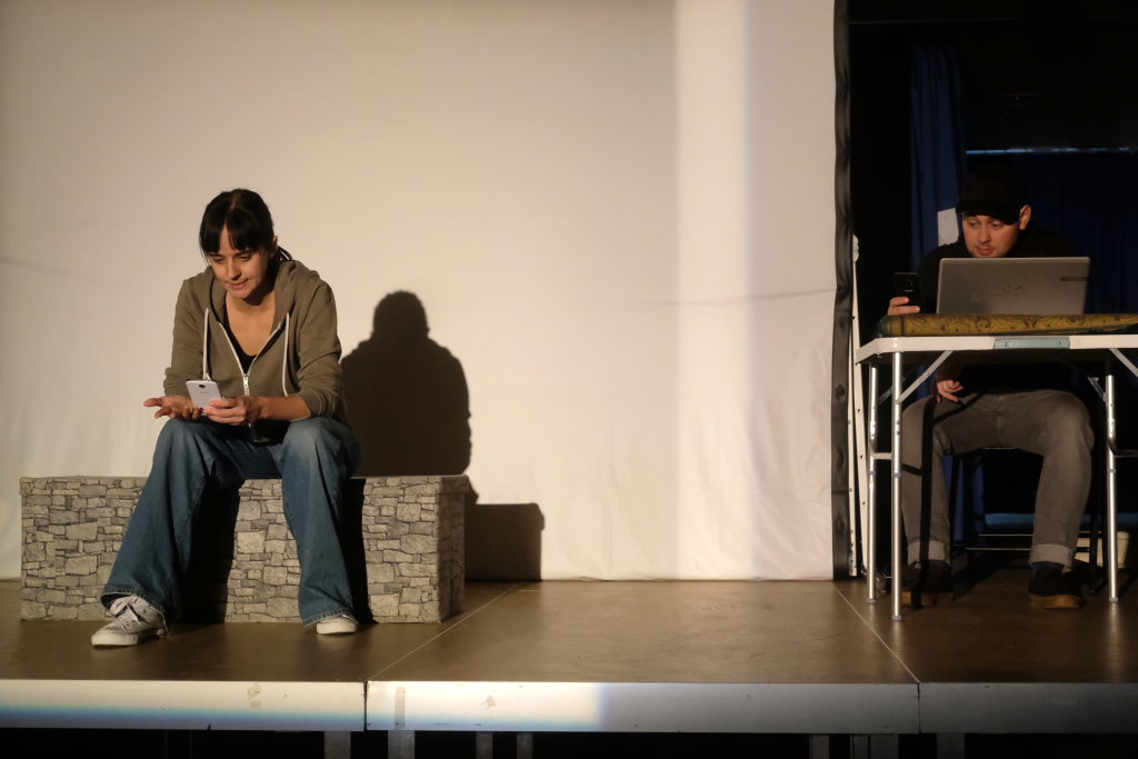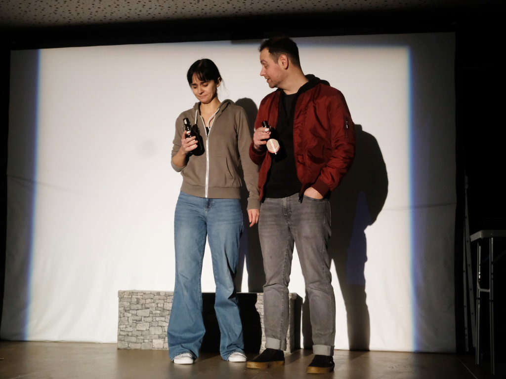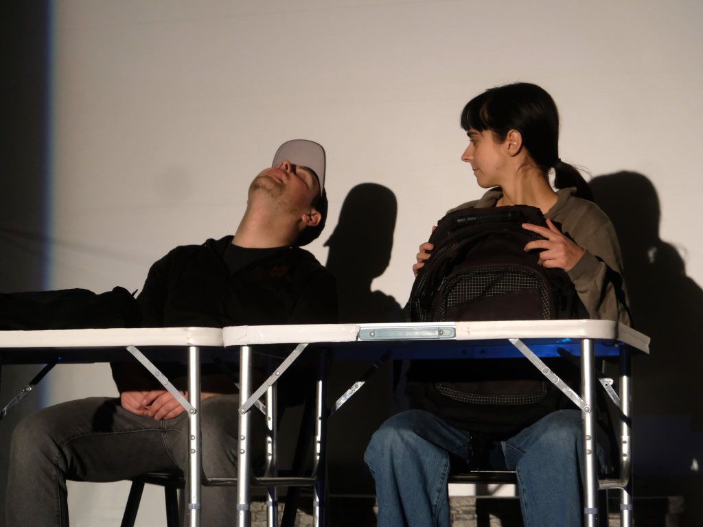 Die ehemalige besten Freunde Tarik (Stefan Vitelariu) und Lina (Marlies Bestehorn) giften sich am Ende des Stückes an – radikalisiert von ihrer jeweiligen Gruppe.