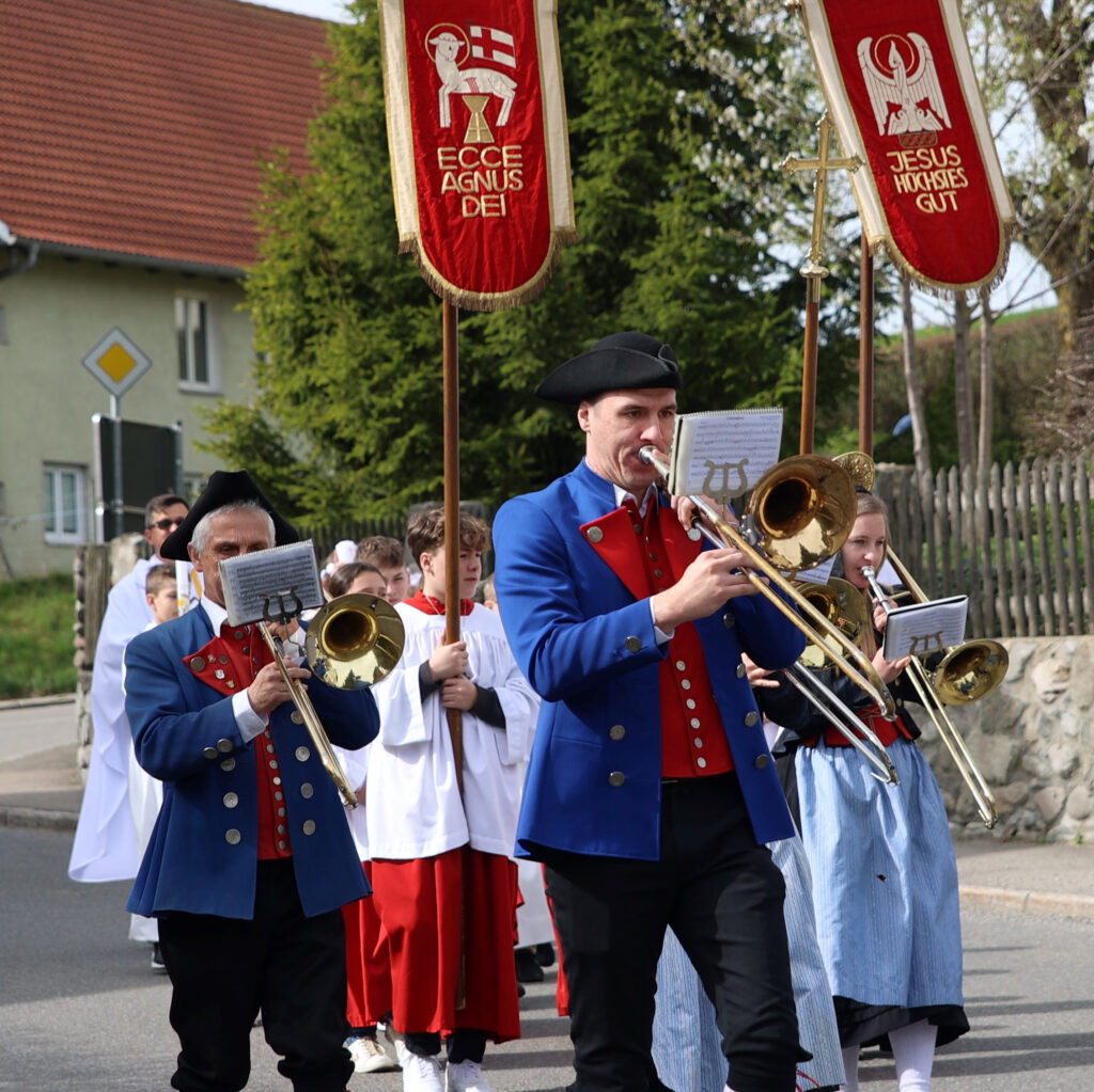Hauerz (dbsz) – Heuer gab es in Hauerz sechs Erstkommunikanten. Pater Mariusz vom Gottesberg war Zelebrant bei der festlichen Erstkommunionfeier. Die Musik des Festgottesdienstes lag in den bewährten Händen von Gabriele Tobisch mit ihrem Projektchor und die strahlenden Trompetenklänge kamen von Gebhard Kuhn. Auch der Musikverein unter der Leitung von Simon Wältl war im Einsatz; traditionell geleitet der MV die Kinder zur Kirche und spielt nach dem Gottesdienst noch ein kleines Platzkonzert – was heuer bei fast sommerlicher Witterung ein besonderer Genuss war. Die sechs Hauerzer Erstkommunionkinder sind: Kilian Aumann, Magdalena Baumann, Nico Bullinger, Jasmin Ferenczik, Philipp Frey und Nele Kuhn. Nachstehend Bilder vom Weißen Sonntag in Hauerz; gemacht hat sie Hans Reichert.