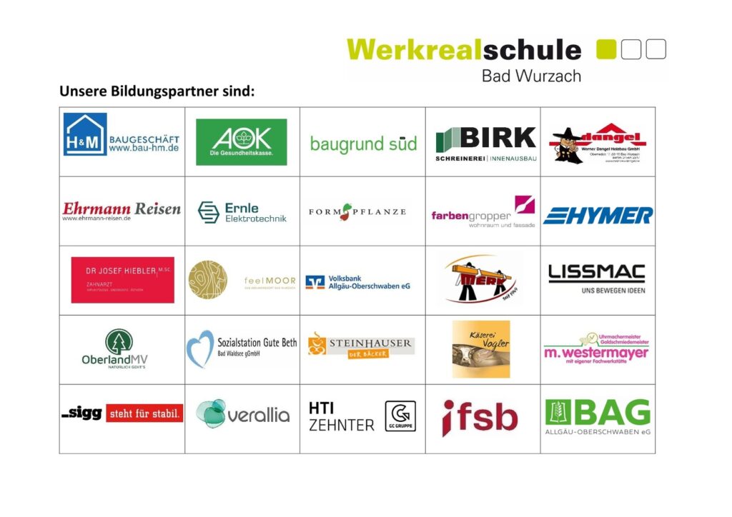 Das Tableau zeigt die Bildungspartner der Werkrealschule Bad Wurzach. Grafik: Boris