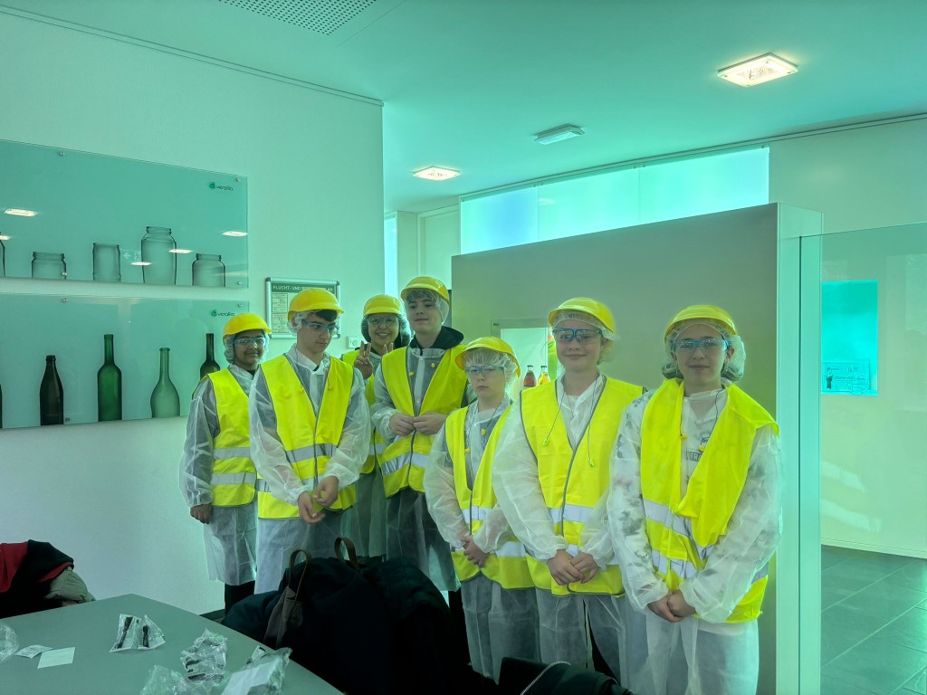 Bei der Firma Verallia AG erfuhren die Jugendlichen (Bild nachstehend) beim Rundgang durch das Betriebsgelände die wesentlichen Herstellungsschritte von Glasflaschen. Ebenso wurden sie über die in der Firma angebotenen Ausbildungsberufe des Industriemechanikers und des Verfahrensmechaniker /Glas (m/w/d) informiert.