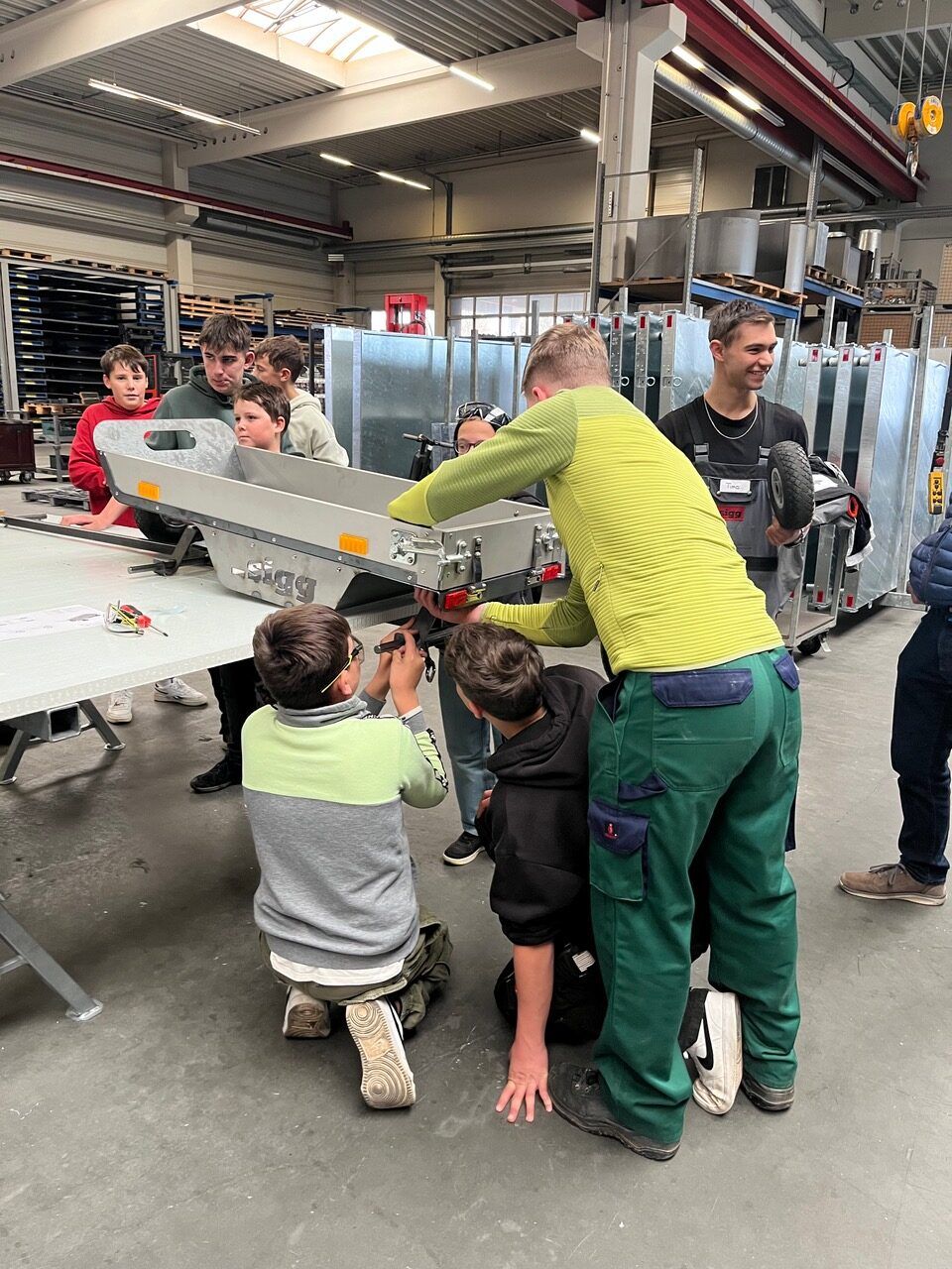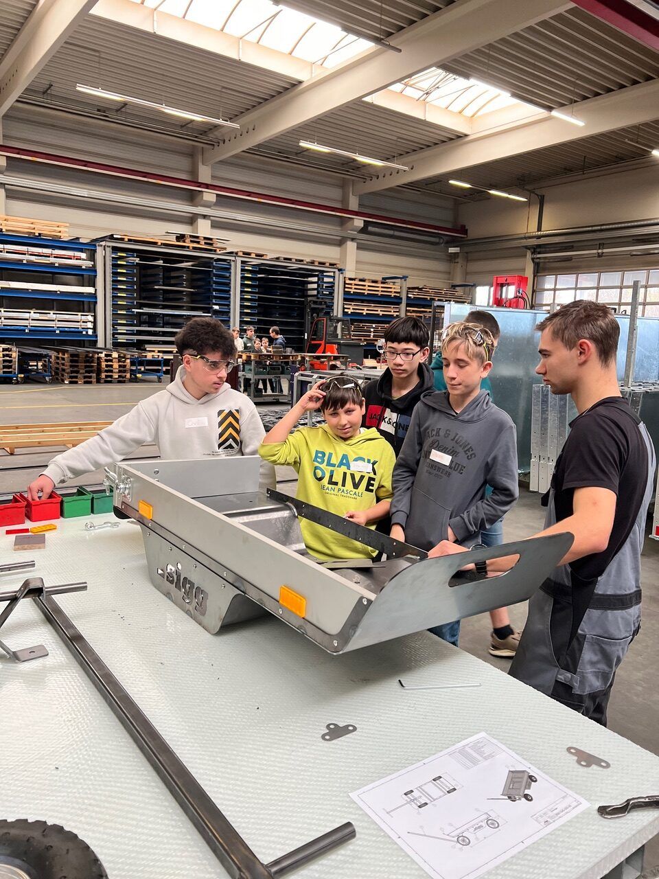 Ein umfangreiches Projekt, das in der Montagehalle der Firma in Bad Wurzach stattfand. Sven Riß war von dem Vormittag sehr begeistert. Nach dem großartigen Erlebnis konnte er sich endlich entscheiden, wo er sein zweites Praktikum im Frühjahr 2025 absolvieren wird. „Bisher fand ich Arbeiten mit Holz super – und somit mache ich eines der beiden Praktika auch als Schreiner. Doch durch dieses Bollerwagenprojekt weiß ich, dass ich die zweite Woche unbedingt bei der Firma Sigg machen möchte,“ so Sven bei der Reflexionsrunde.