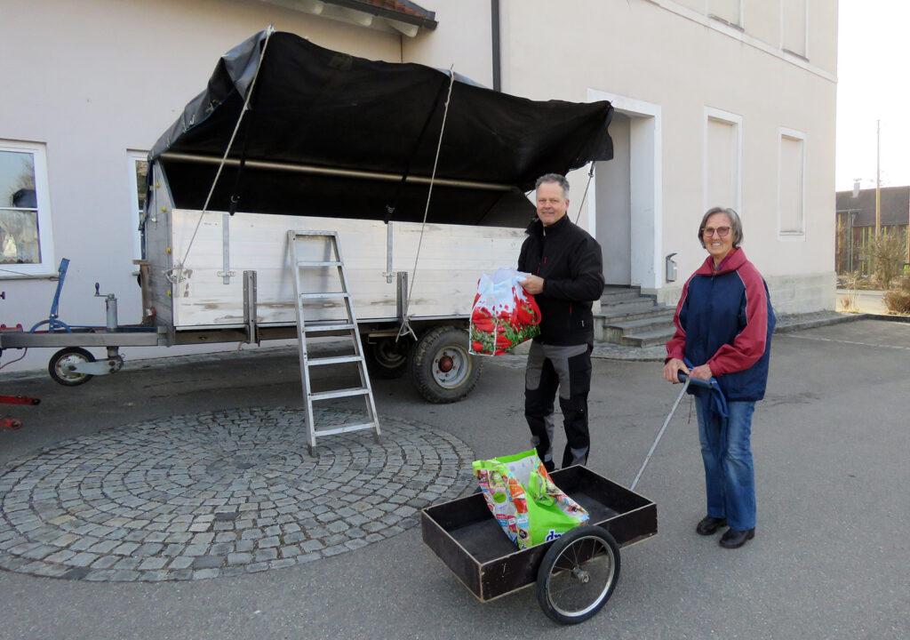 Papiersammlung in Arnach. Unser Bild entstand am heutigen Samstag (7.3.) gegen 9.00 Uhr. Jürgen Ebenhoch hatte sein Gespann pünktlich um 8.30 Uhr am Sammelplatz aufgestellt. Sein Traktor ist ein Porsche-Renault Baujahr 1964.