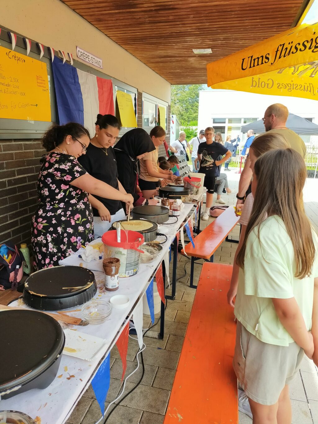 Hier erhielten alle Klassen ihre Gold-, Silber- und Bronzemedaillen und das Olympische Feuer wurde von unserem Schulleiter, Herrn Schiller, gelöscht. Weitere, bestens geplante Angebote wie Kinderschminken, Gläser gravieren, ein Tanz-Flashmob, ein Crêpes-Verkauf sowie eine Spielestation rundeten die Veranstaltung ab.