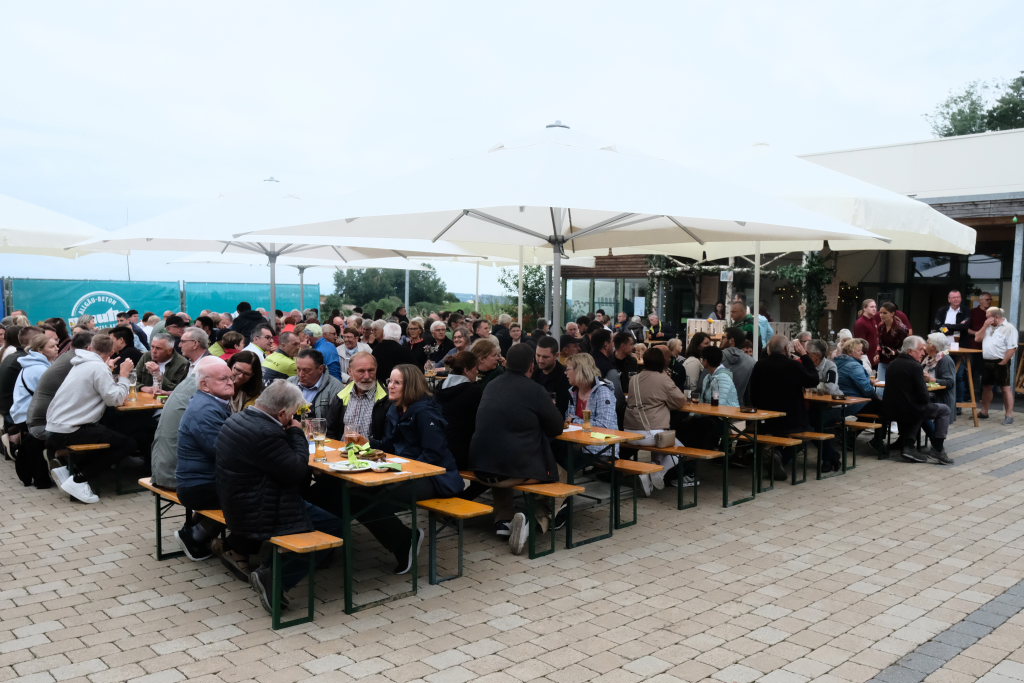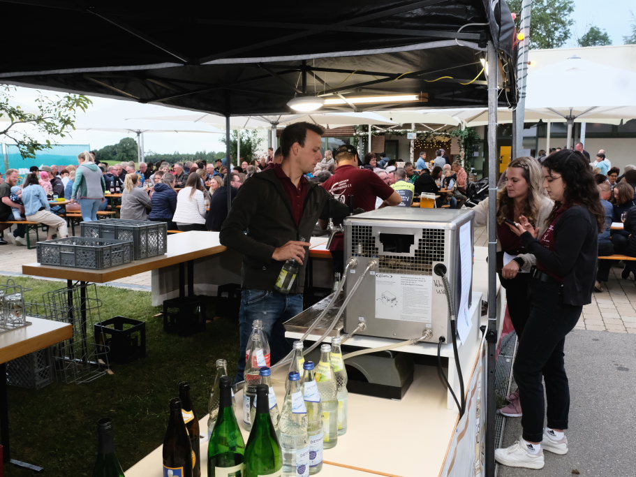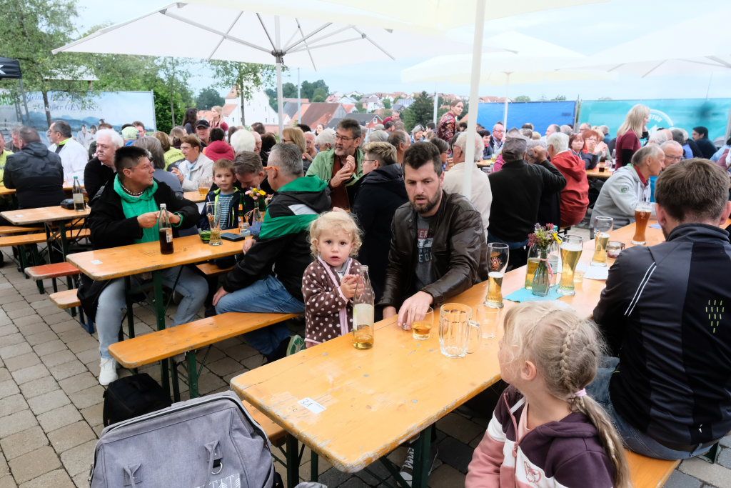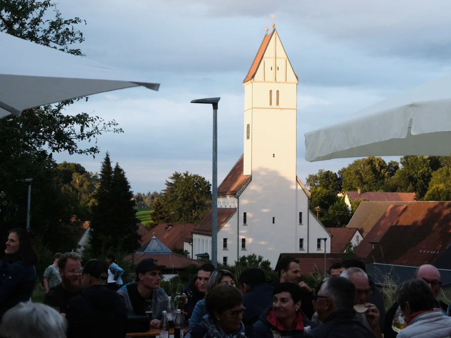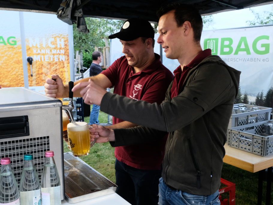 Am Samstagabend spielte das Sextett Allgäu-Sound zum Dämmerschoppen auf dem Festgelände bei Schule und Festhalle neben fetziger Oberkrainermusik auch Schlager und Rockmusik aus vielen Jahrzehnten. Dazu servierten die Musiker des Musikvereines den Besuchern zu den diversen Kaltgetränken Vesperbrettla und Wurstsalat. In der Weinlaube gab es gute Weine, aber auch sommerlich-erfrischende Mixgetränke. Und weil auch das Wetter einigermaßen mitspielte, wurde es ein gemütlicher Sommerabend für die ganze Familie mit vielen netten Gesprächen.