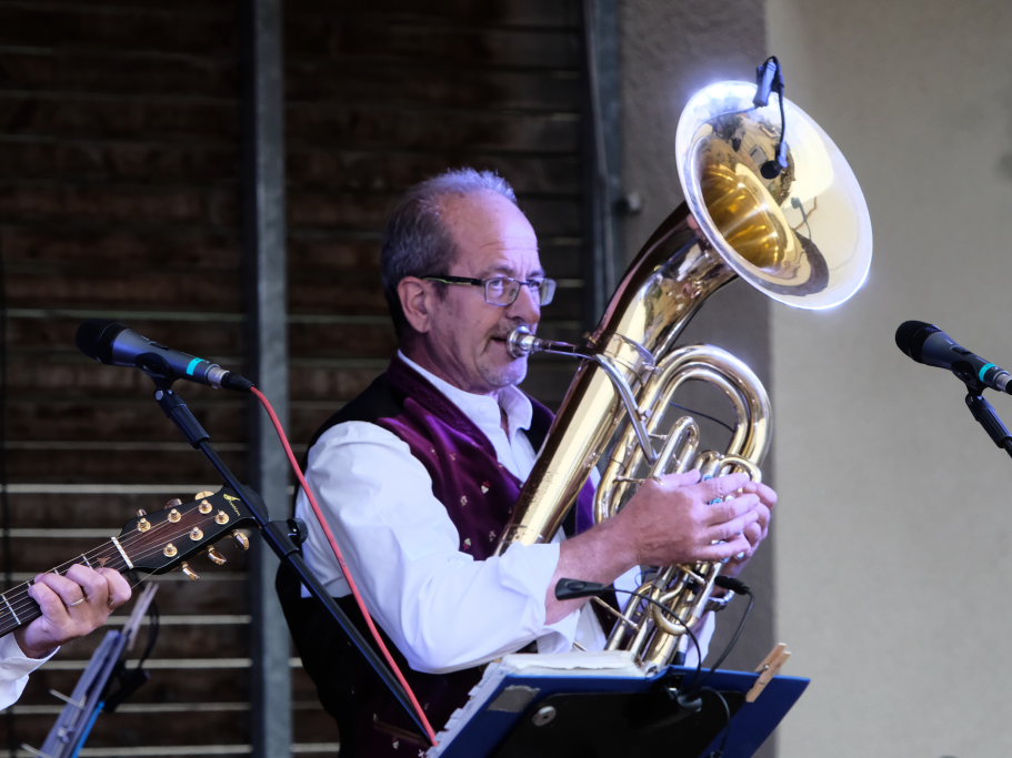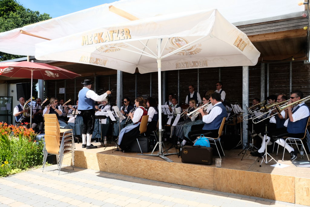 Angesichts der opulenten Speisenkarte, die der Musikverein alljährlich seinen Gästen beim Sommerfest bietet – neben den üblichen Bratwürsten und Pommes gab es Schweinebraten mit selbstgemachten Spätzle, diverse Salate, Maultaschen bis hin zu Gyros – konnte einem schon das Herz aufgehen. Allein das wäre schon höchst lobenswert, ist aber umso höher einzuschätzen, wenn man diesen Aufwand in Relation zu der Anzahl der Helfer setzt.