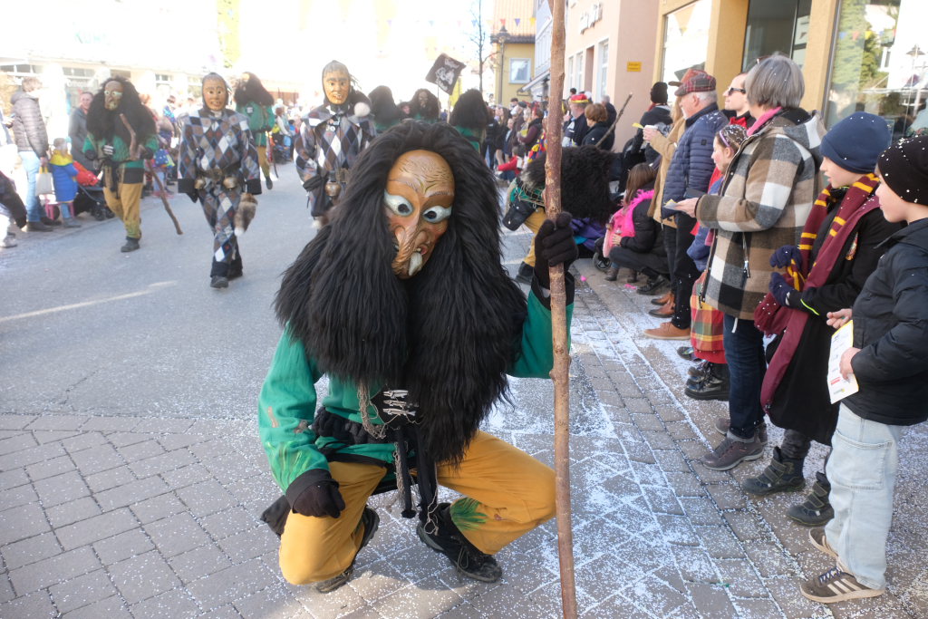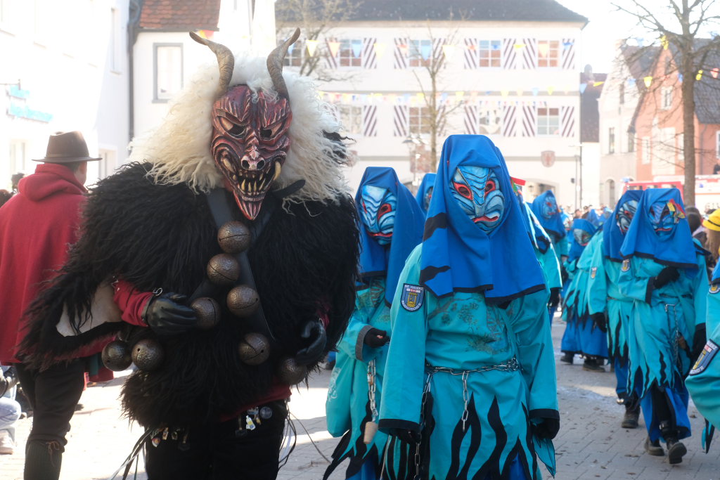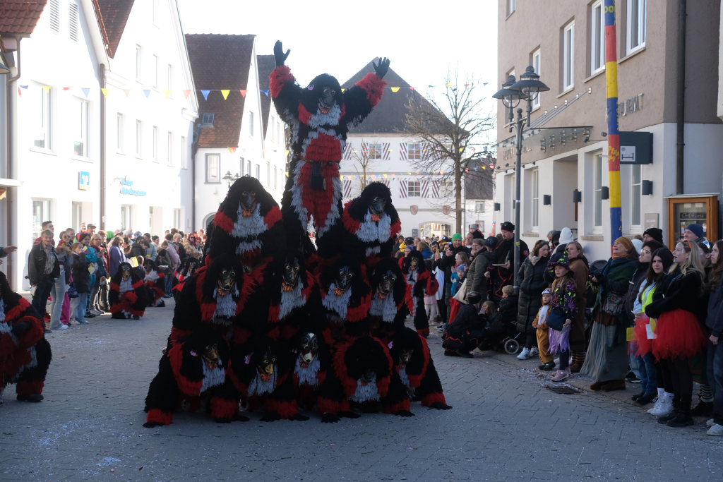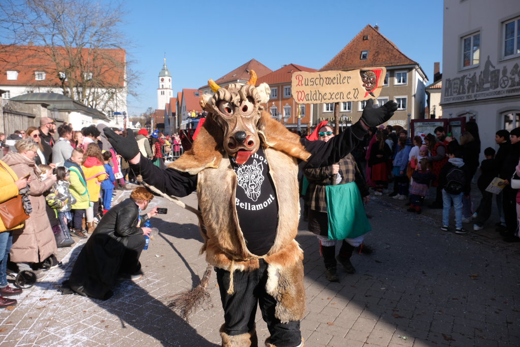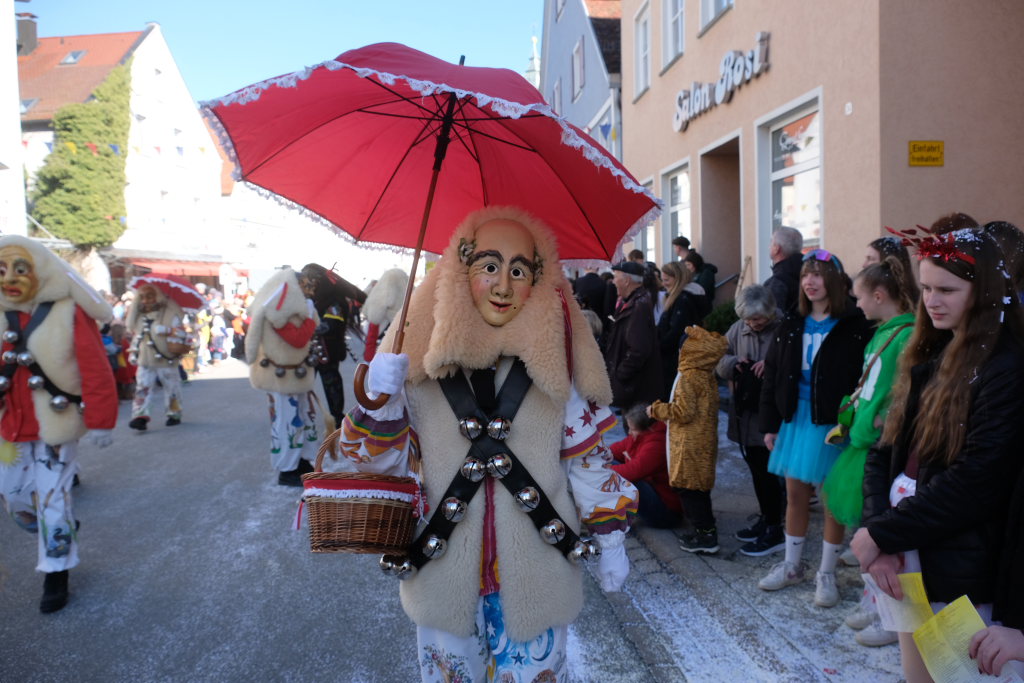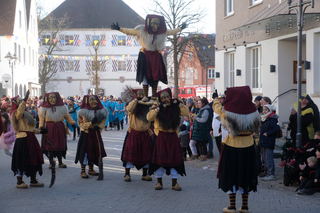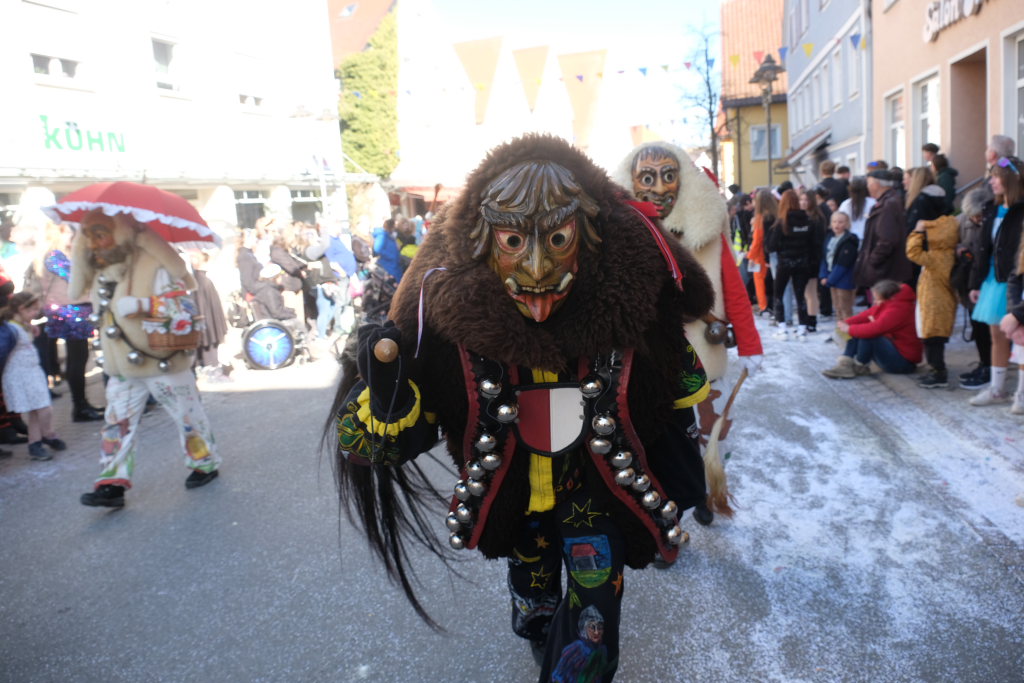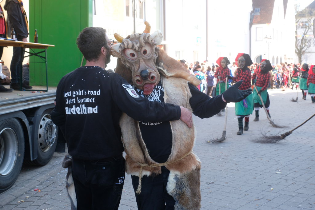 Aber auch aus dem benachbarten Bayrischen, so aus Memmingen, Buchenberg oder dem Illerwinkel, waren große Abordnungen dabei. Dass der Landkreis Biberach ebenfalls sehr groß ist, zeigen die Zünfte wie die Bawaldbohle aus Ellwangen und die Zeller Schwarze Katz aus Eberhardzell aus der näheren Umgebung, dann aber auch diejenigen aus Uttenweiler und Äpfingen, die schon aus Richtung Ulm kommen.