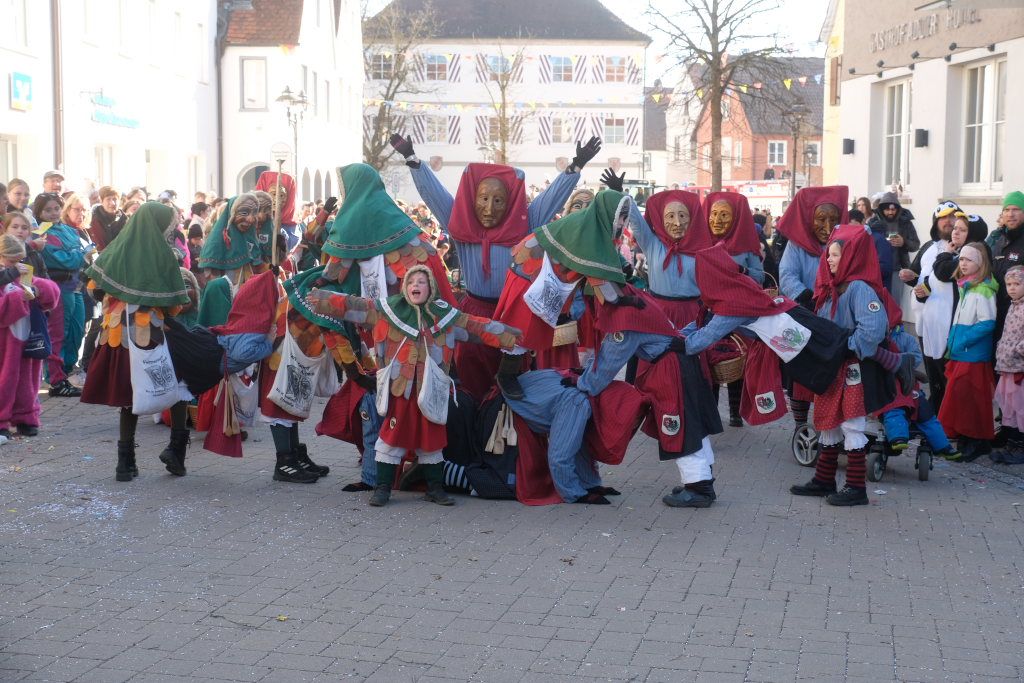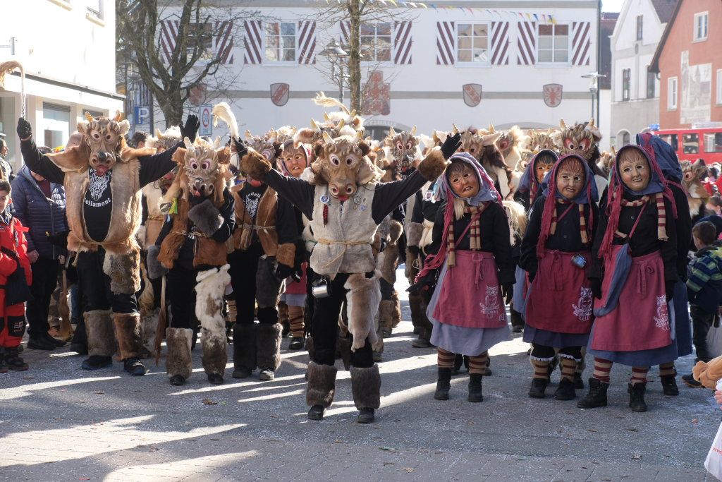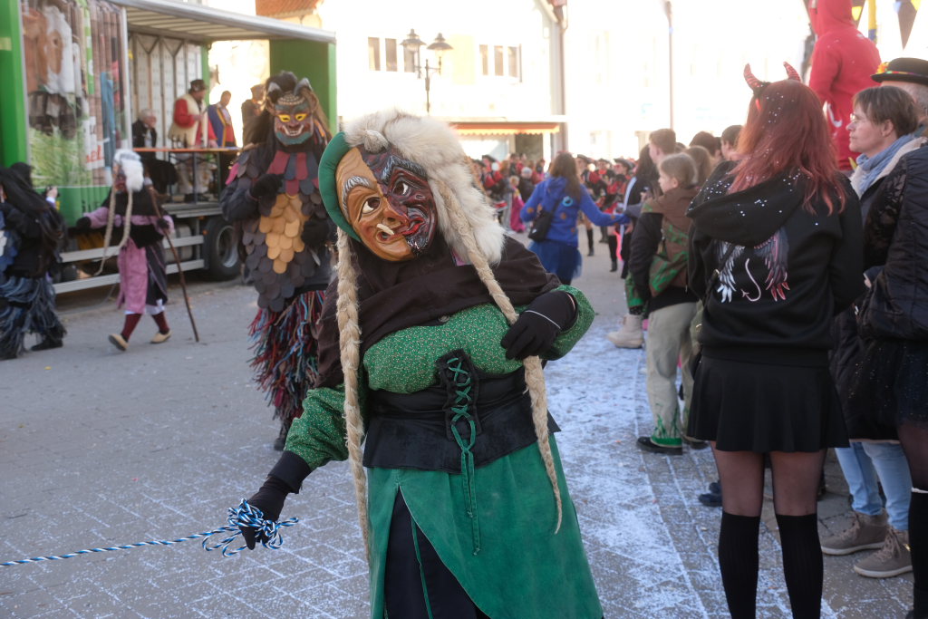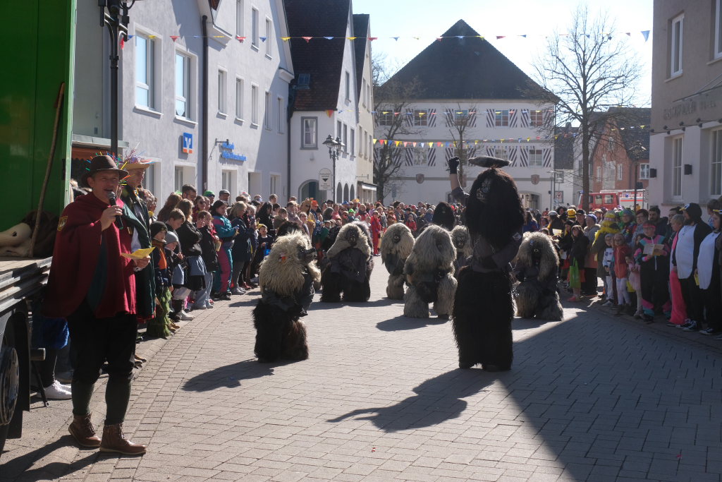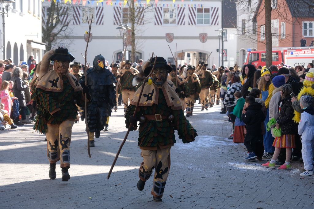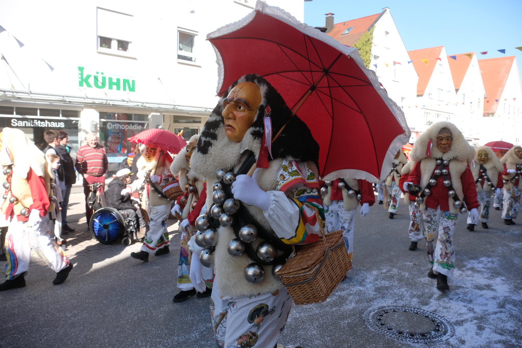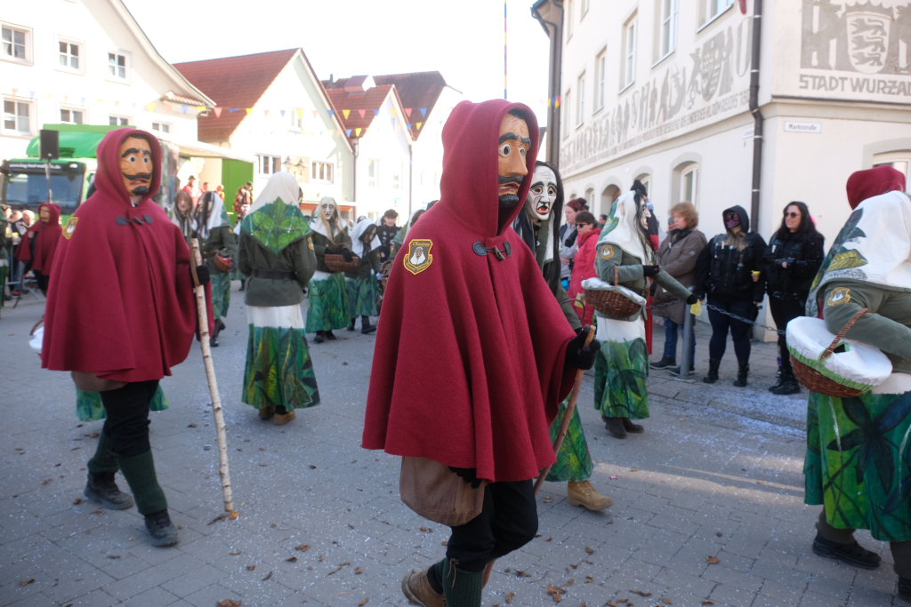 Aber auch aus dem benachbarten Bayrischen, so aus Memmingen, Buchenberg oder dem Illerwinkel, waren große Abordnungen dabei. Dass der Landkreis Biberach ebenfalls sehr groß ist, zeigen die Zünfte wie die Bawaldbohle aus Ellwangen und die Zeller Schwarze Katz aus Eberhardzell aus der näheren Umgebung, dann aber auch diejenigen aus Uttenweiler und Äpfingen, die schon aus Richtung Ulm kommen.