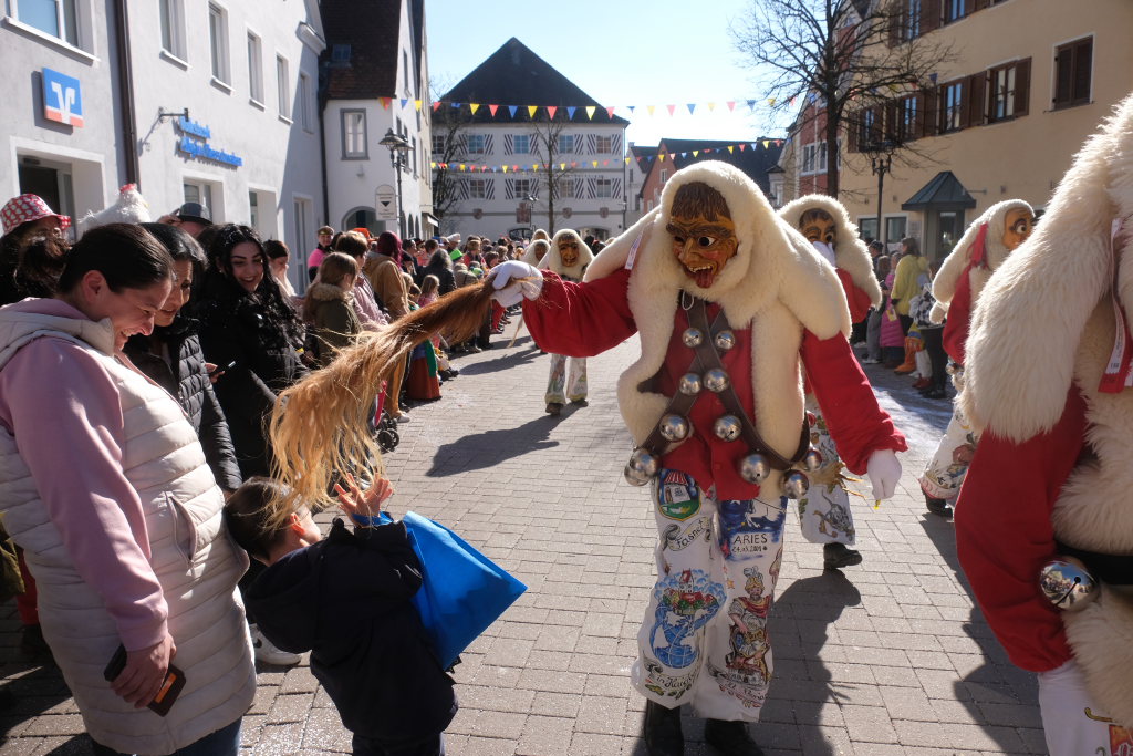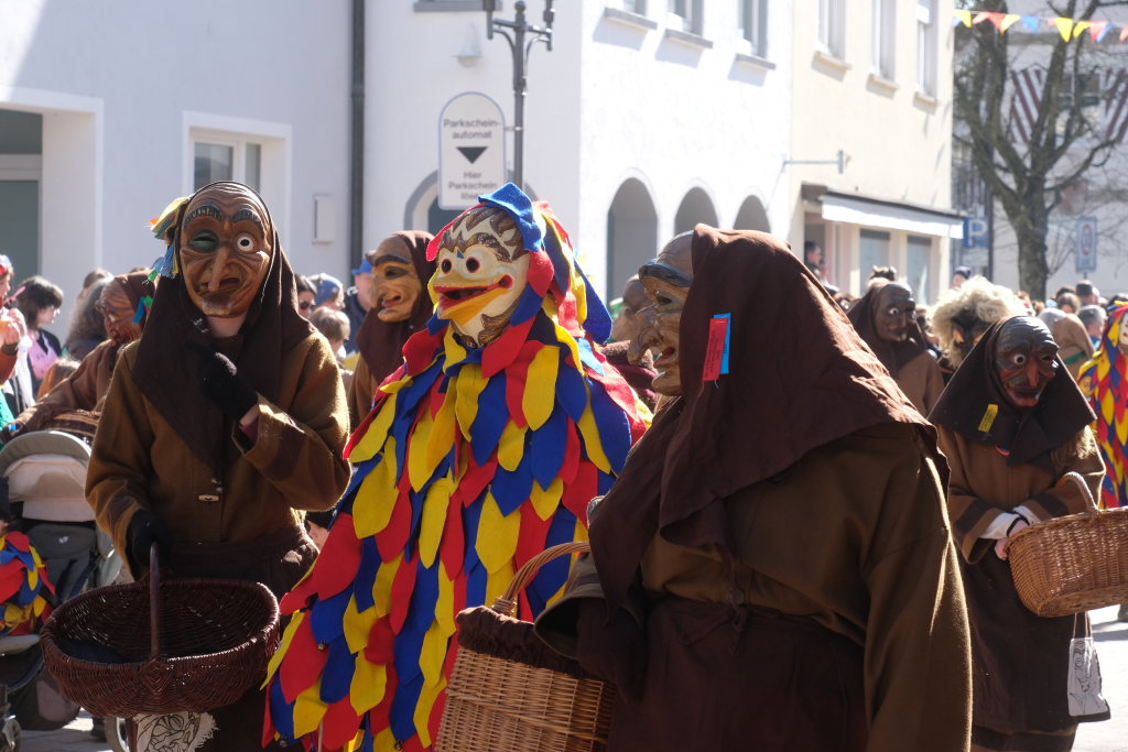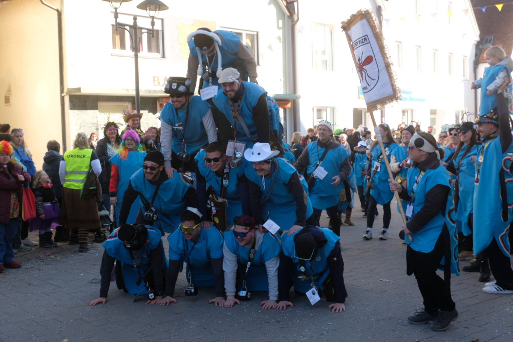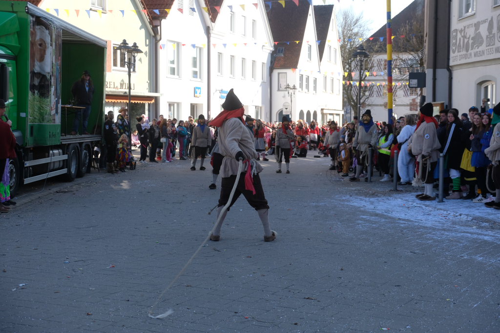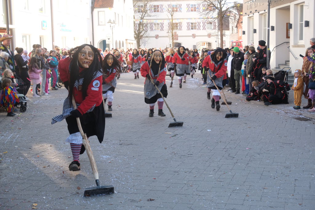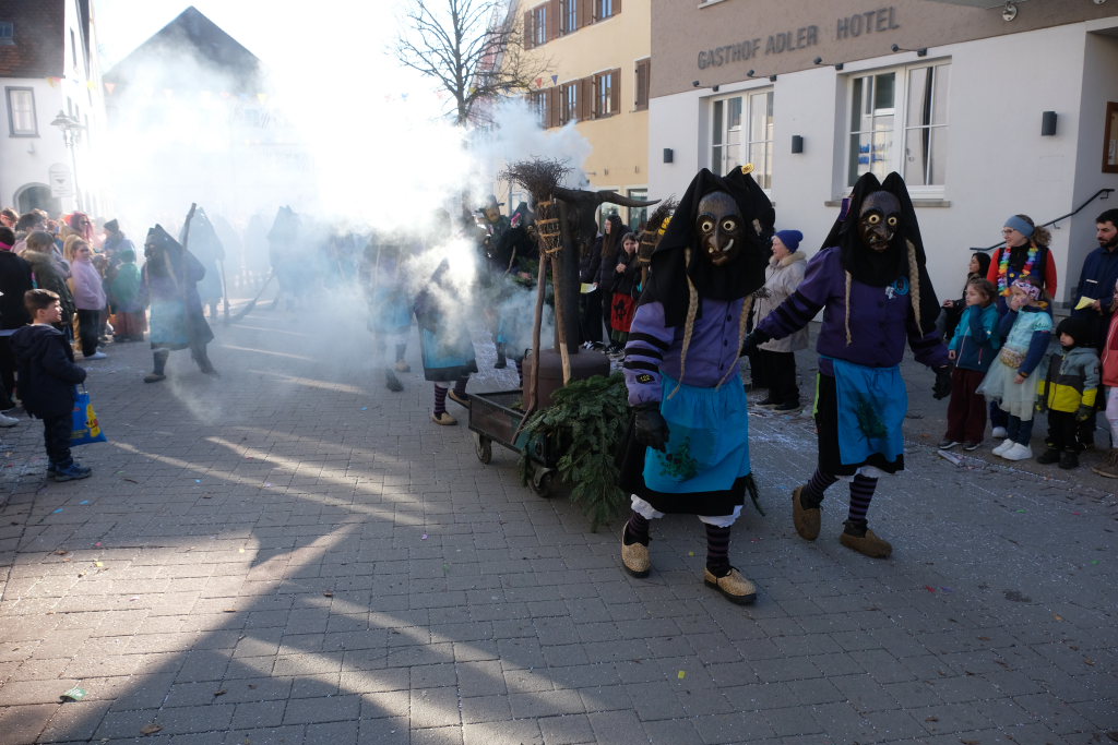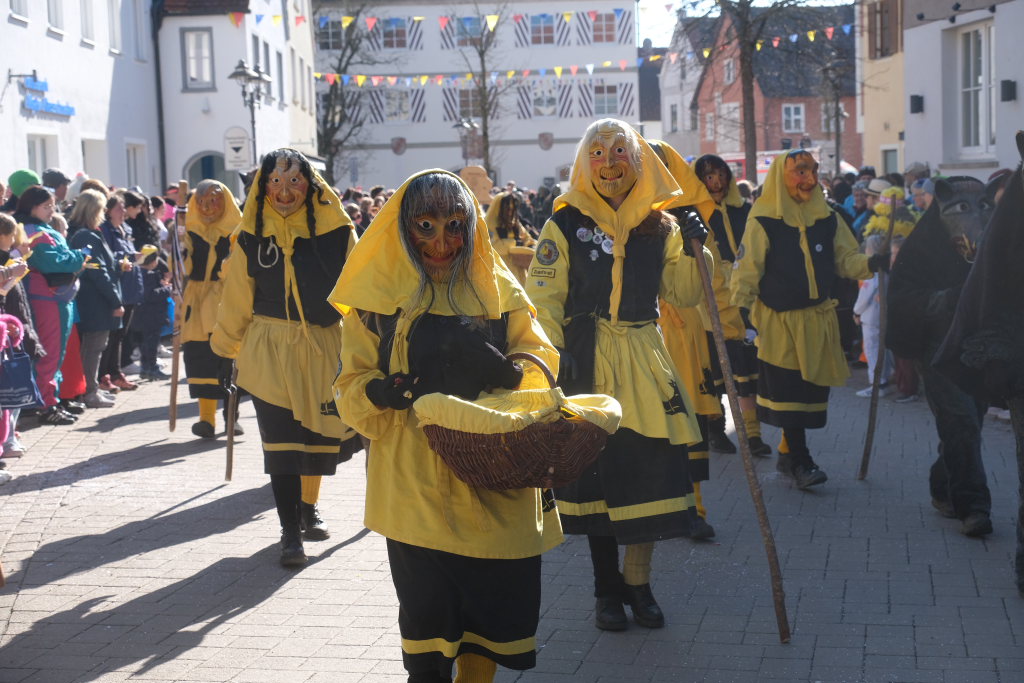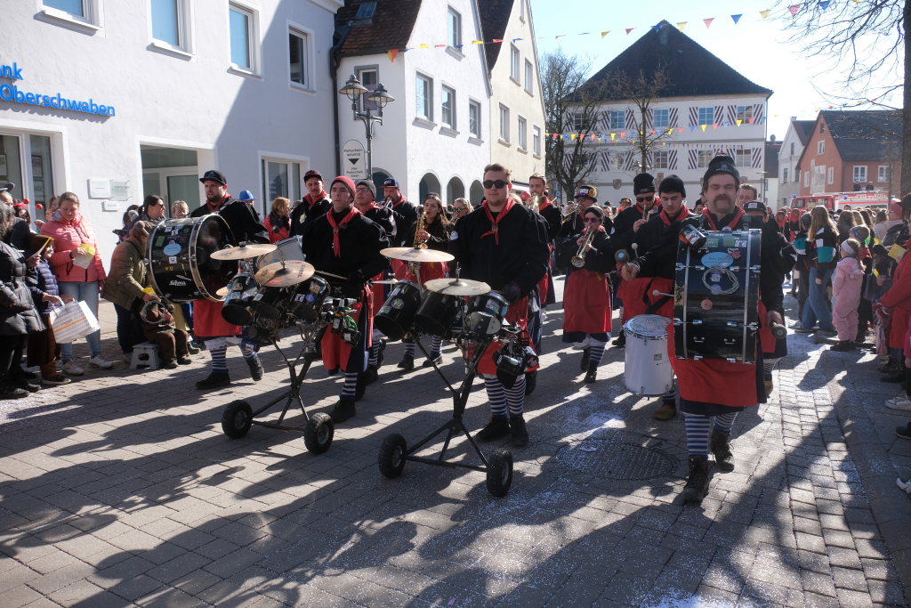 Aber auch aus dem benachbarten Bayrischen, so aus Memmingen, Buchenberg oder dem Illerwinkel, waren große Abordnungen dabei. Dass der Landkreis Biberach ebenfalls sehr groß ist, zeigen die Zünfte wie die Bawaldbohle aus Ellwangen und die Zeller Schwarze Katz aus Eberhardzell aus der näheren Umgebung, dann aber auch diejenigen aus Uttenweiler und Äpfingen, die schon aus Richtung Ulm kommen.