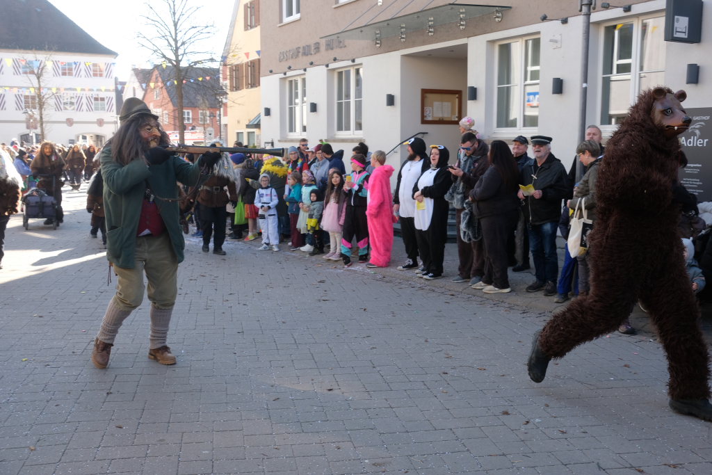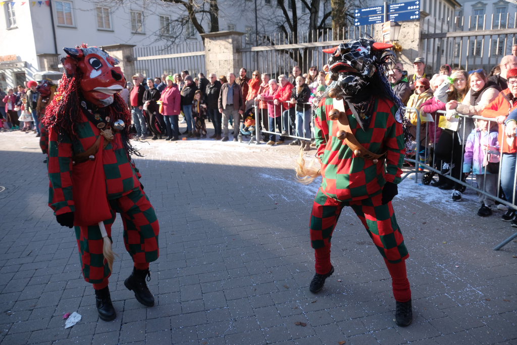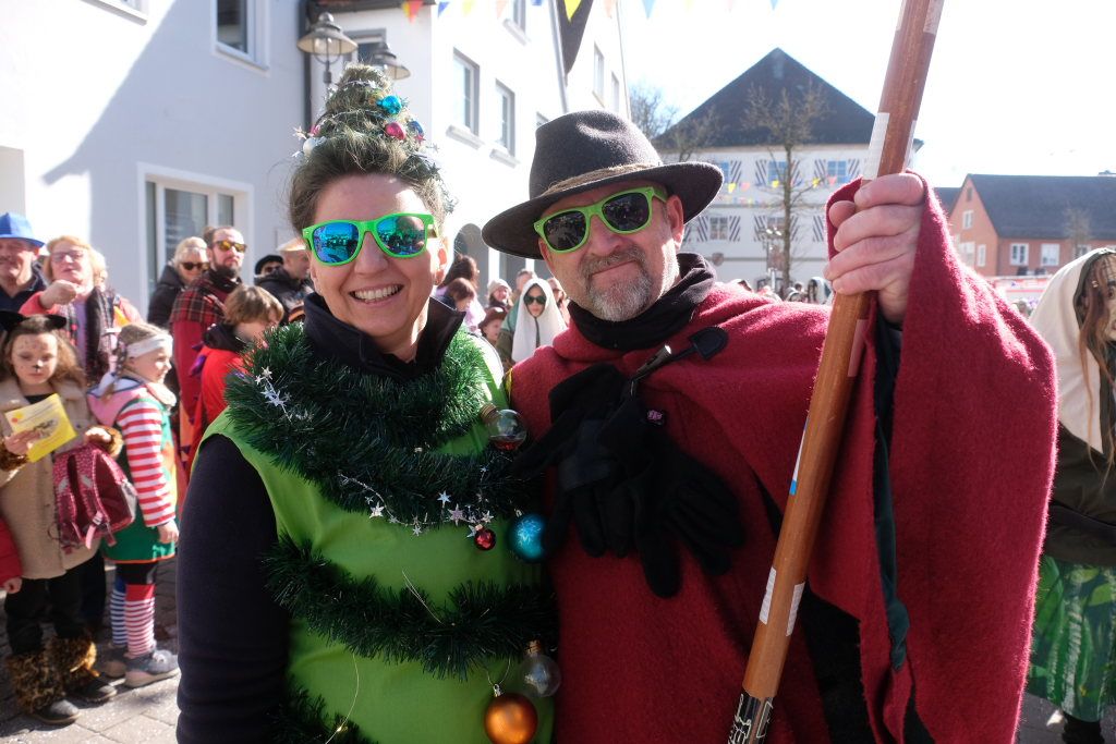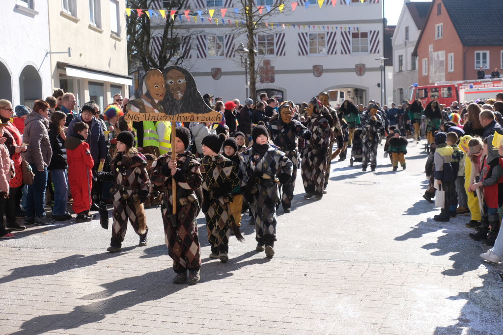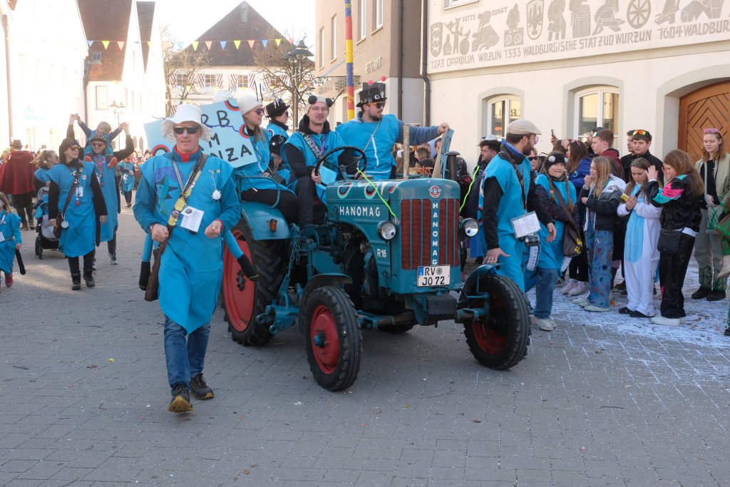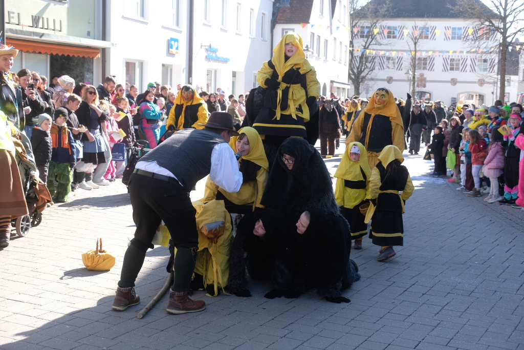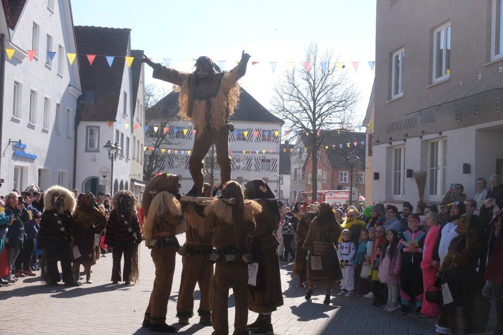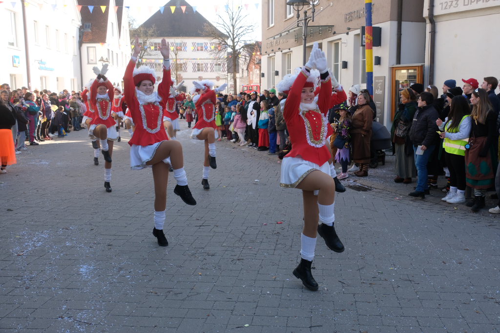 Aber auch aus dem benachbarten Bayrischen, so aus Memmingen, Buchenberg oder dem Illerwinkel, waren große Abordnungen dabei. Dass der Landkreis Biberach ebenfalls sehr groß ist, zeigen die Zünfte wie die Bawaldbohle aus Ellwangen und die Zeller Schwarze Katz aus Eberhardzell aus der näheren Umgebung, dann aber auch diejenigen aus Uttenweiler und Äpfingen, die schon aus Richtung Ulm kommen.